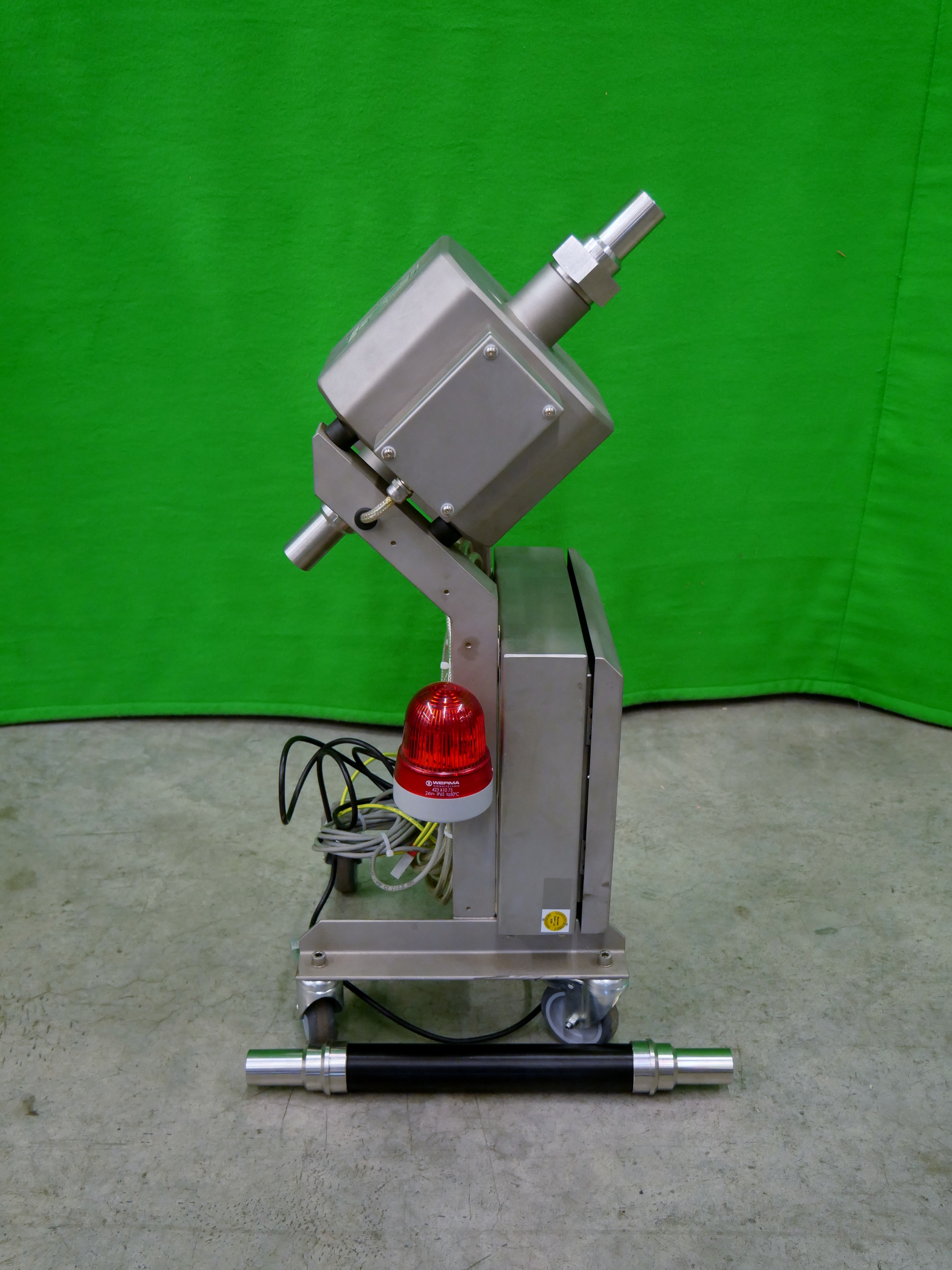 Mesutronic MN 5.1 PW50 Metallsuchgerät für Schüttgüter, etc. ohne integrierte Ausscheidevorrichtung, Ausscheiddauer einstellbar von 0.1 s bis 10 s, Einlaufhöhe (Mitte Rohr) ca. 755 mm, Auslaufhöhe (Mitte Rohr) ca. 450 mm, Rohr-Aussendurchmesser ca. 32 mm, Rohr-Innendurchmesser ca. 28 mm, elektrischer Anschluss 100-240V/50/60Hz, Maschinenabmessungen ca. 350 x 350 x 770 mm (LxBxH), Maschinennettogewicht ca. 35 kg.