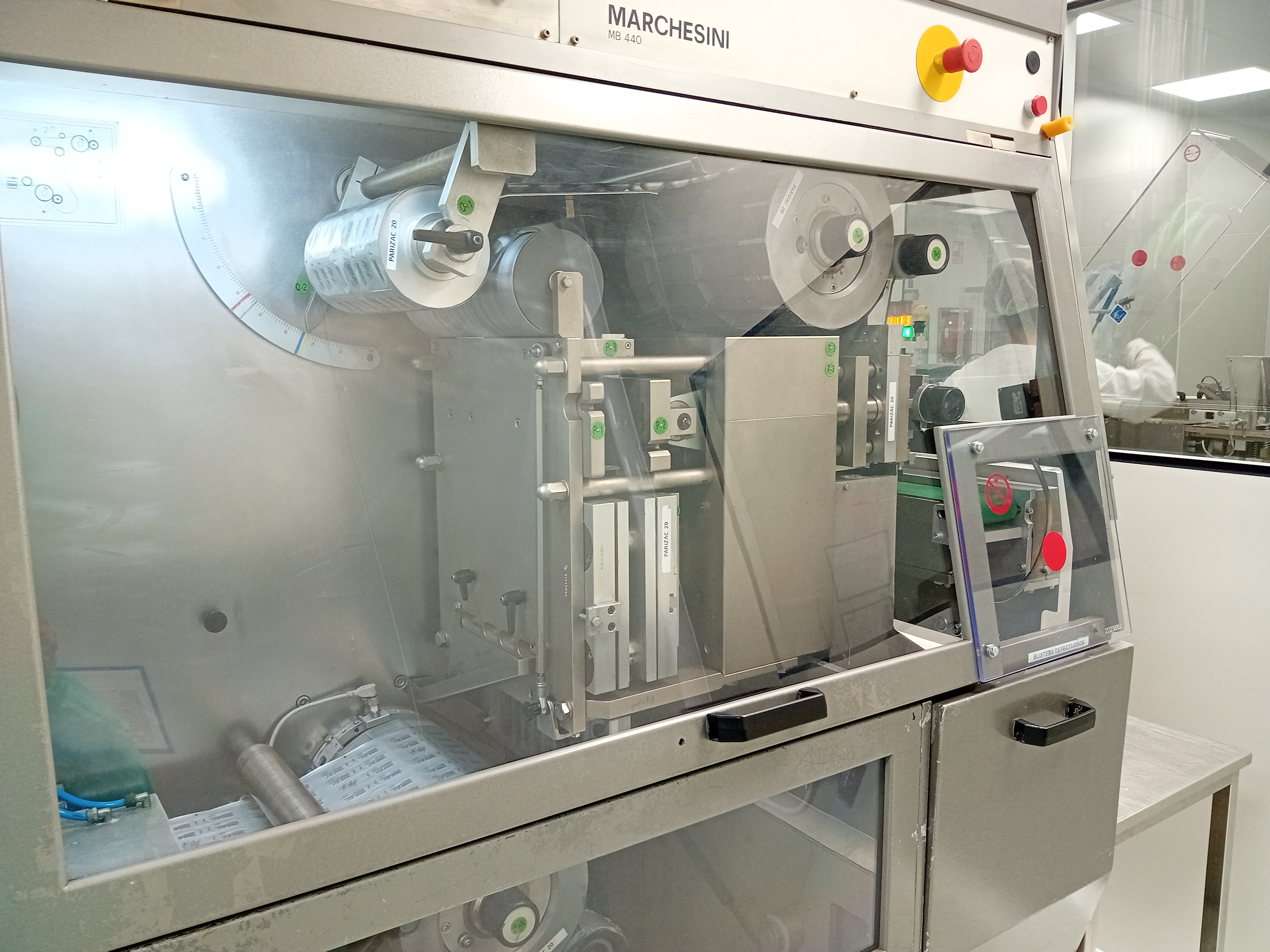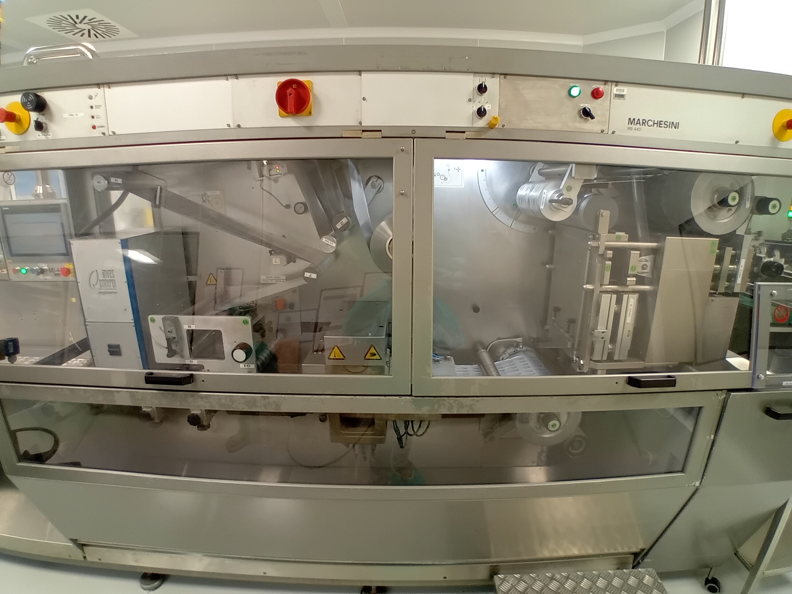 Marchesini/Mettler-Toledo Garvens/Sollas komplette Blisterverpackungslinie für Tabletten und Kapseln in ALU/ALU und PVC/ALU Blister bestehend aus Marchesini MB 440 Blistermaschine, max. Folienbreite 280 mm, max. Durchlassbreite 180 mm, max. Formtiefe 12 mm, Rollendurchmesser Tiefziehfolie max. 420 mm, Rollendurchmesser Deckfolie max. 280 mm, Rollenkerndurchmesser 70-76 mm, iNVES CONTROL (pygsaGROUP) Kamerafüllgutkontrolle, Siemens SIMATIC HMI, Leistung bis zu 55 Takte/min., Maschinennettogewicht ca. 3400 kg, direkte Übergabe der Blister in Marchesini BA 300 horizontale Kartoniermaschine in kontinuierlicher Arbeitsweise, Faltschachtelformatbereich min. 25 x 13 x 78 mm (AxBxH), max. 100 x 70 x 200 mm (AxBxH), GUK Prospektfalzapparat ab Stapel, versetzter Steckverschluss, Leistung bis zu 300 Faltschachteln/min., Maschinennettogewicht ca. 2100 kg, Mettler-Toledo Garvens XS3 Bandkontrollwaage mit Schlechtauswurf, Wiegebereich von 10 bis 1200 g, e=0,5 g, d=0,5 g, Leistung 30m/min. bzw. 75 FS/min., Sollas SB Straffbanderoliermaschine für Faltschachteln, etc. mit „Wasserfallzuführung“, inklusive diverser Blisterformatsätze
