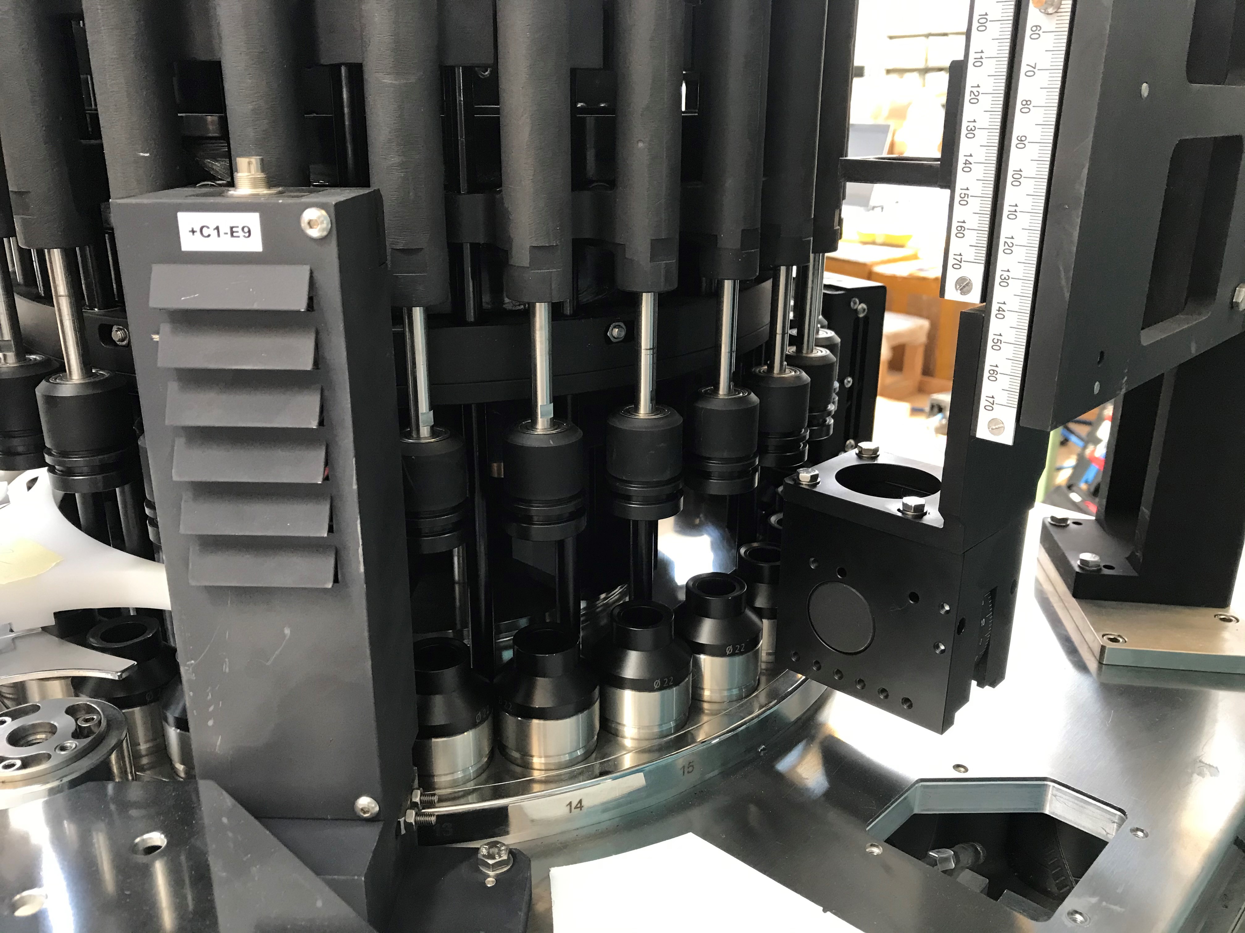 Brevetti A30LD vollautomatische Inspektionsmaschine für Vials, etc., Inspektionskriterien: Partikel in der Flüssigkeit, Aluminiumbördelkappe, Flip-Off-Kappe (Draufsicht), Farbe der Flip-Off-Kappen, Anwesenheit Gummistopfen, Glasrisse, Füllvolumen und Dichtigkeitsprüfung mittels Hochspannungsverfahren; mit entsprechenden Formatteilen geeignet für Behältnisse mit einem Durchmesser von 8 bis 36 mm und einer maximalen Höhe von 135 mm, Leistung bis zu 200 Vials pro Minute