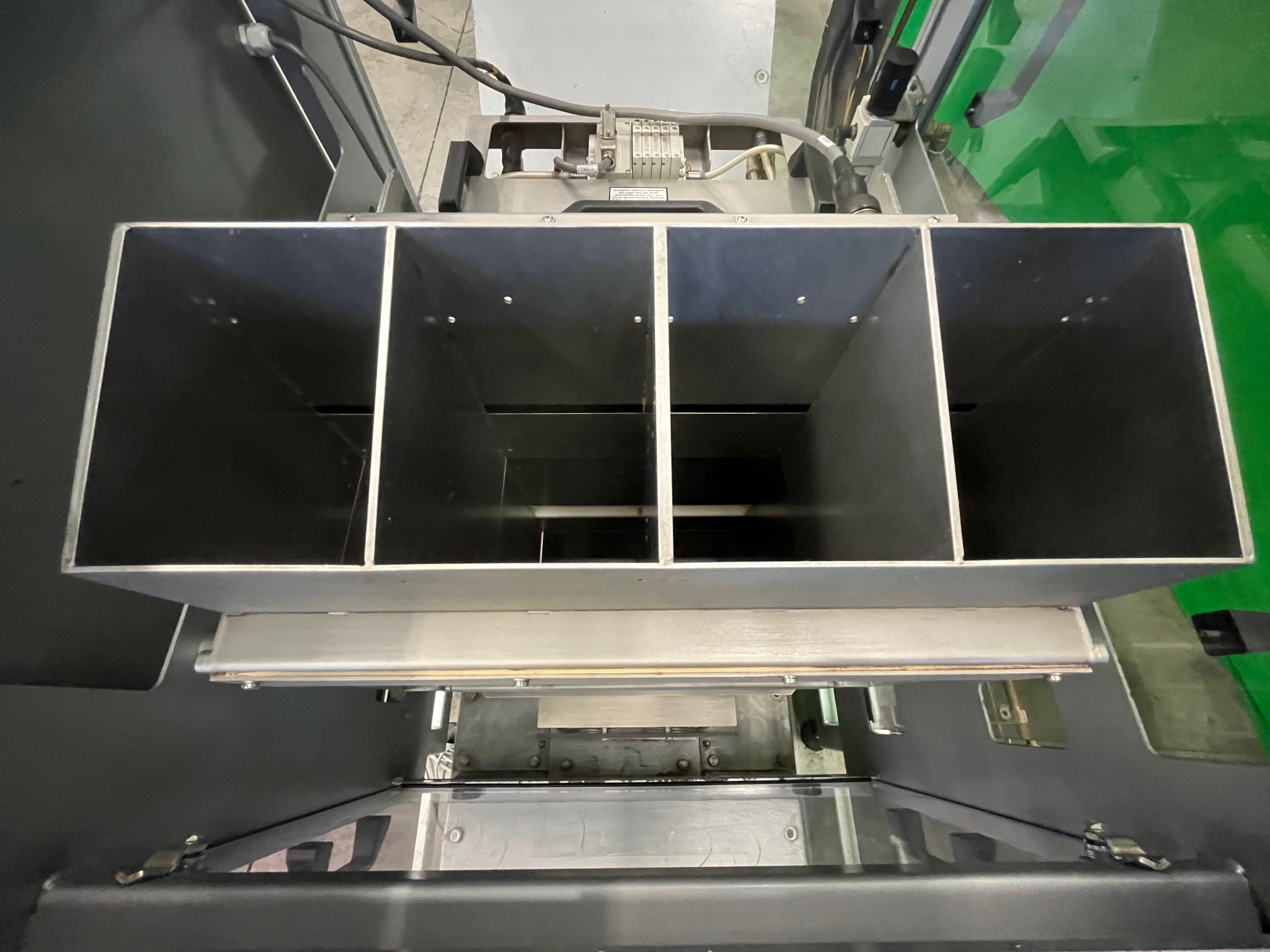 Cremer TQF-4100 Produktzählsystem inklusive Bechertransporteur zur Beschickung von Verpackungsmaschinen (z.B. vertikale Schlauchbeutelmaschine, etc.), 4-bahniges Zählwerk mit separaten Infrarot-Erkennungskanälen, Schlechtauswurf bei Unter- oder Überzählung, Hand-Terminal (Keypad) zum Einrichten, Bedienen, Überwachen und zur Rezeptverwaltung des Zählwerkes, elektrischer Anschluss 3x400V/3Ph/50Hz, Stromverbraucht 700 VA, Druckluftzufuhr 6-8 bar, Betriebsdruck 6 bar