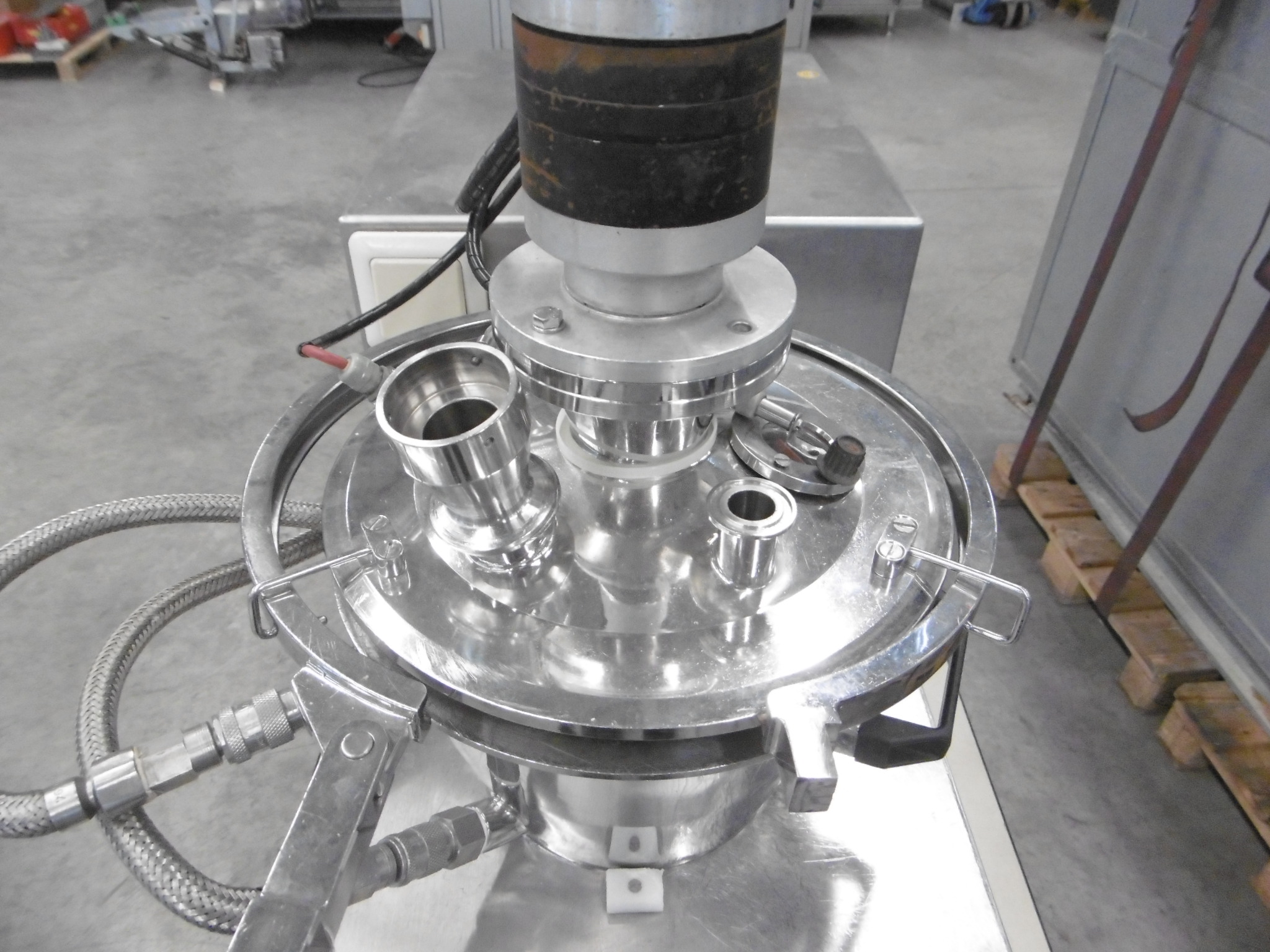 EKATO UNIMIX LM 4,5 Labor-Mischer zur Herstellung von Salben, Cremes, etc., Füllvolumen von 1,0 bis 4,0 Liter, Ankerrührwerk mit Abstreifern (50-210 U/min.), Homogenisator/ Dissolver (8000-24000 U/min.), doppelwandig zum Heizen/Kühlen, vakuumfähig, zulässiger Betriebsüberdruck Produktraum -1/+2 bar, zulässiger Betriebsüberdruck Heizraum 6 bar, zulässige Betriebstemperatur Produktraum 133ºC, zulässige Betriebstemperatur Heizraum 150ºC, Deckelhubvorrichtung, Temperiereinrichtung, elektrischer Anschluss 220V, 50/60 Hz, maximale Leistungsaufnahme 3kW.