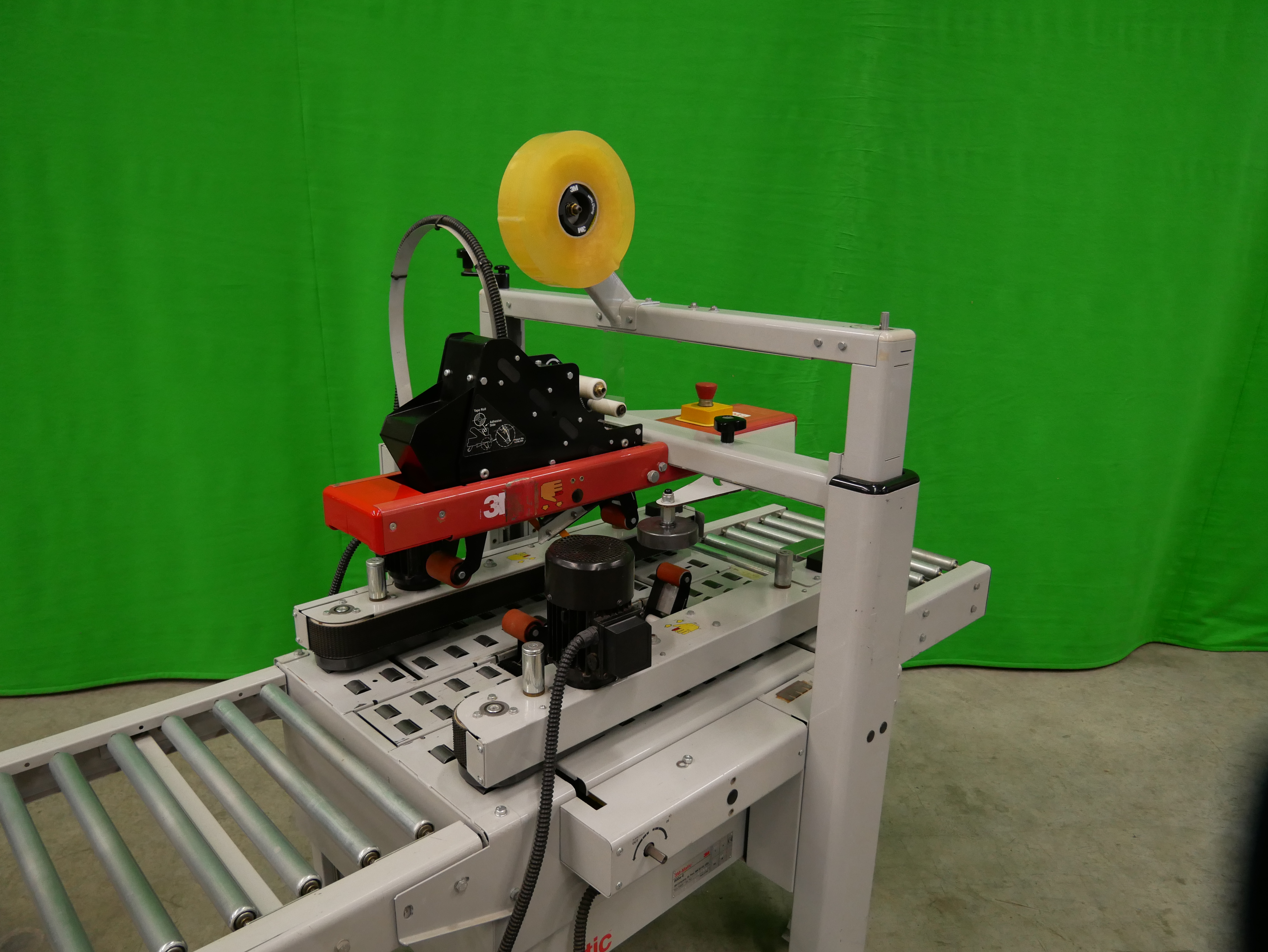 3M-Matic 800a-E Type 29600 (5799) Kartonverschließmaschine für Deckel- und Bodenverschluß mit Klebeband, seitliches Riemenbandantriebssystem, Kartonformatbereich in mm Länge 150 - ~, Breite 115 – 550, Höhe 120 – 625, manuelle Kartongrößeneinstellung, maximales Kartongewicht ca. 38 kg, Rollenauslauf mit einer Länge von ca. 1200 mm, Antrieb seitlich, elektrischer Anschluss 380V/50Hz/3PH/1,4A, 260W, Maschine in fahrbarer Ausführung auf Rollen, Leistung bis zu 40 Kartons pro Minute