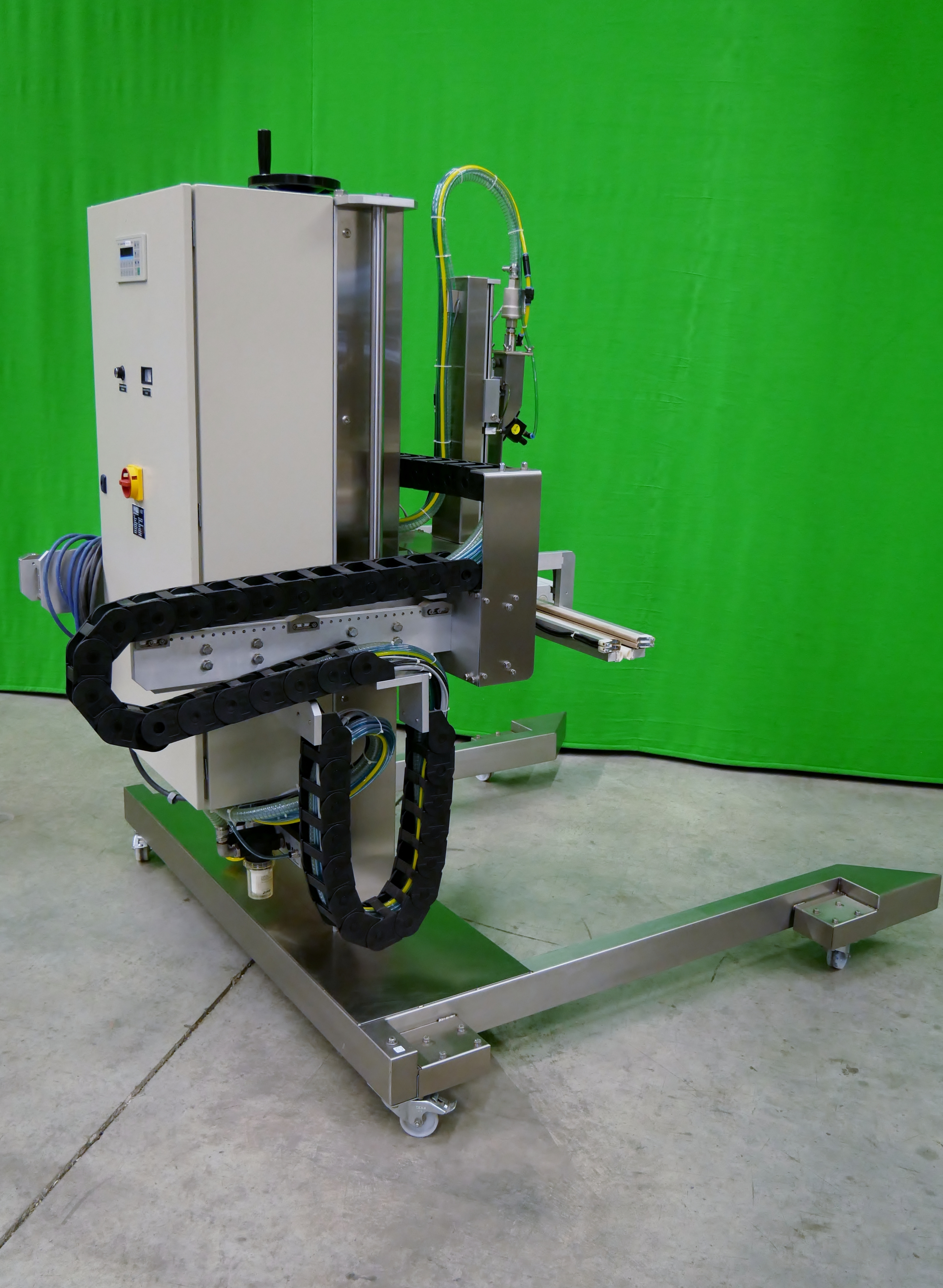Burgener ISPV-3-1100-2 halbautomatische Schweißmaschine zum Verschließen von offenen PE-, Papier- oder alukaschierter Säcken, Sackbreite max. 1050 mm, Sacküberstand oberhalb Produkt min. 120 mm, ausgestattet mit Kopfraumentlüftung (Absaugvorrichtung//Begasungsvorrichtung), Maschine in mobiler Ausführung auf beweglichen Rollen montiert, elektrischer Anschluss 3x400VAC/N/PE, Leistung max. 1.5 kW, Druckluft max. 6 bar, Inertgas max. 4 bar, Maschinengrundfläche ca. 2000 x 1590 mm (Tiefe x Breite), Maschinenhöhe ca. 2400 mm, Maschinennettogewicht ca. 250 kg.