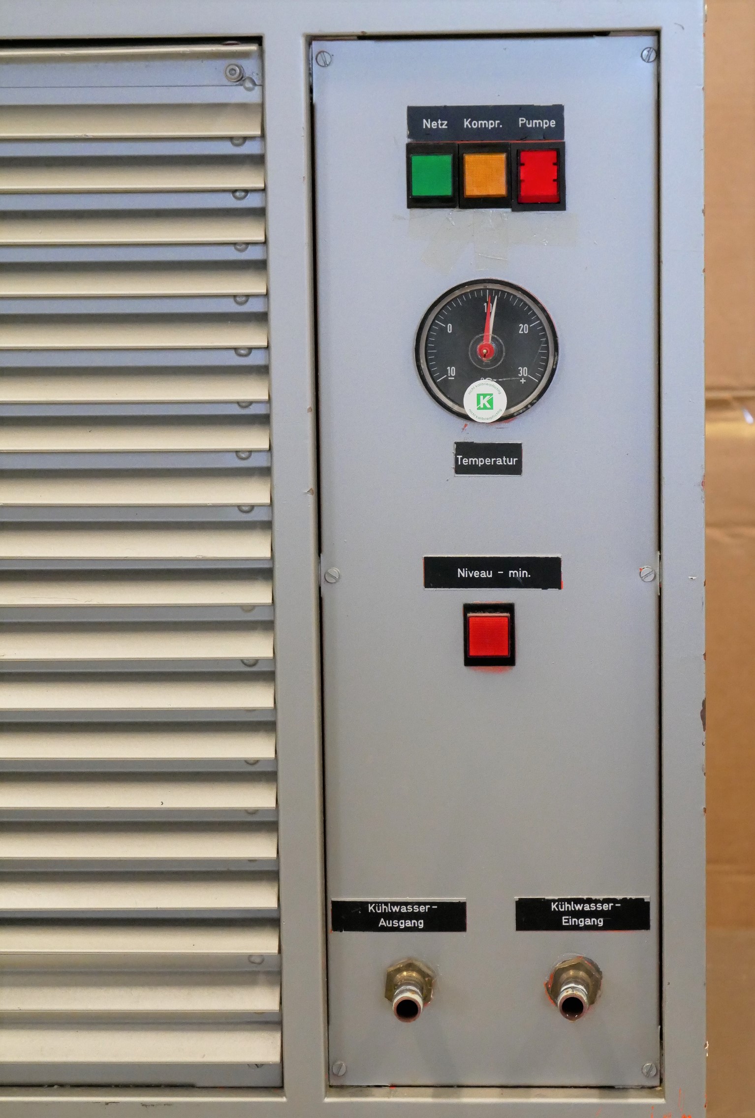 Aquatherm WLR 11 water chiller, cooling medium water, cooling capacity 1.1 kW based on an ambient air temperature of 27°C and a water inlet temperature of 15°C, coolant R12, electrics 220V/1 Ph/50Hz, power consumption 0.7 kW.