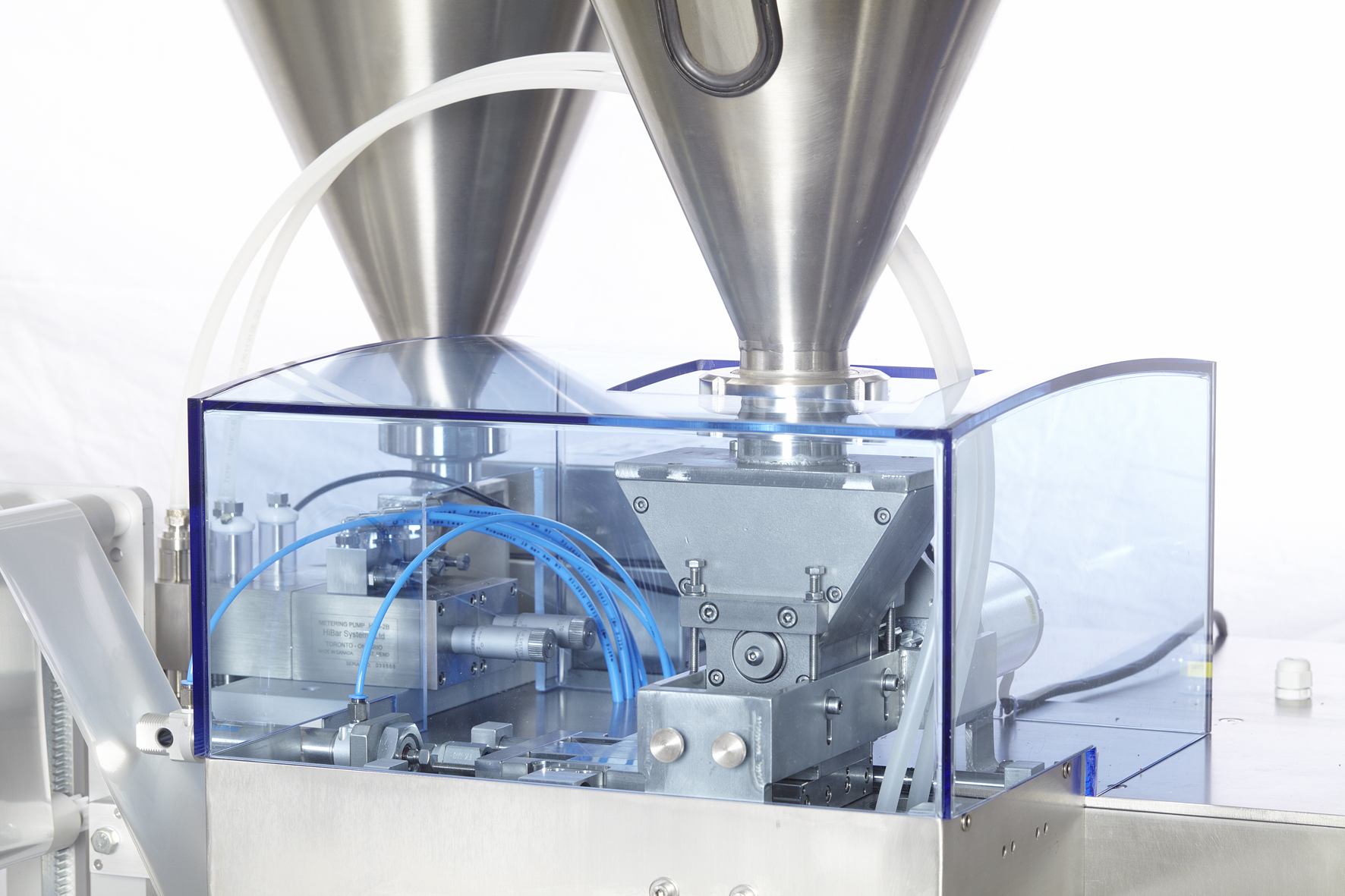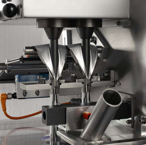 Two lane vertical form fill and seal machine for stickpacks, suitable for sugar, coffee, salt and other similar granular or powder products. Also suitable for filling liquids such as ketchup, honey, mayonnaise with the addition of high accuracy pumps. Four lane version also available.