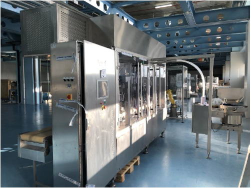 Plümat BFL 852 Linear Filling & Sealing machine for Infusion Bags of PP material, set up for format range 100 – 300ml, consisting of: Fanuc Robot loading system model LR Mate 200/c for preformed bags, transport conveyor to filling station, filling station with 2 massflowmeter systems with electromagnetic filling valves and microprocessor control unit, dosing range 50 - 1000 ml, filling accuracy at 50ml +/- 2,0%, at 100ml +/- 1,5%, at 300ml +/- 1,0%, stoppering station (minitulipe SIPPEX, flipp off), outfeed conveyor, includes format parts for 50ml, 100ml, 200ml & 300ml, including laminar flow unit, output up to 2.200 bags per hour, electrics 230/400V/50Hz, power supply 12kW, power consumption 9kW, compressed air 6 bar, machine footprint approx. 7500 x 2400 mm, machine height approx. 2100mm.