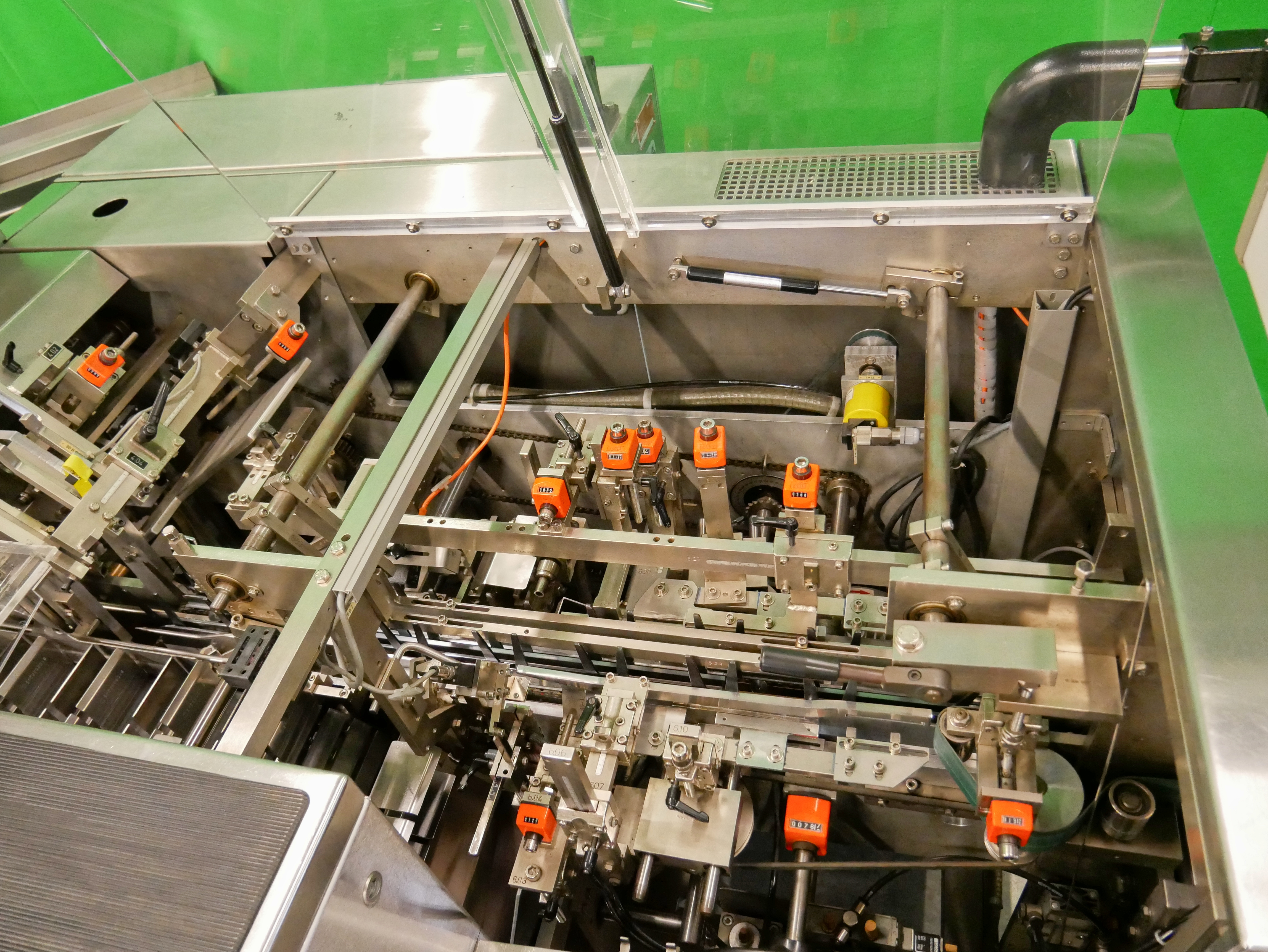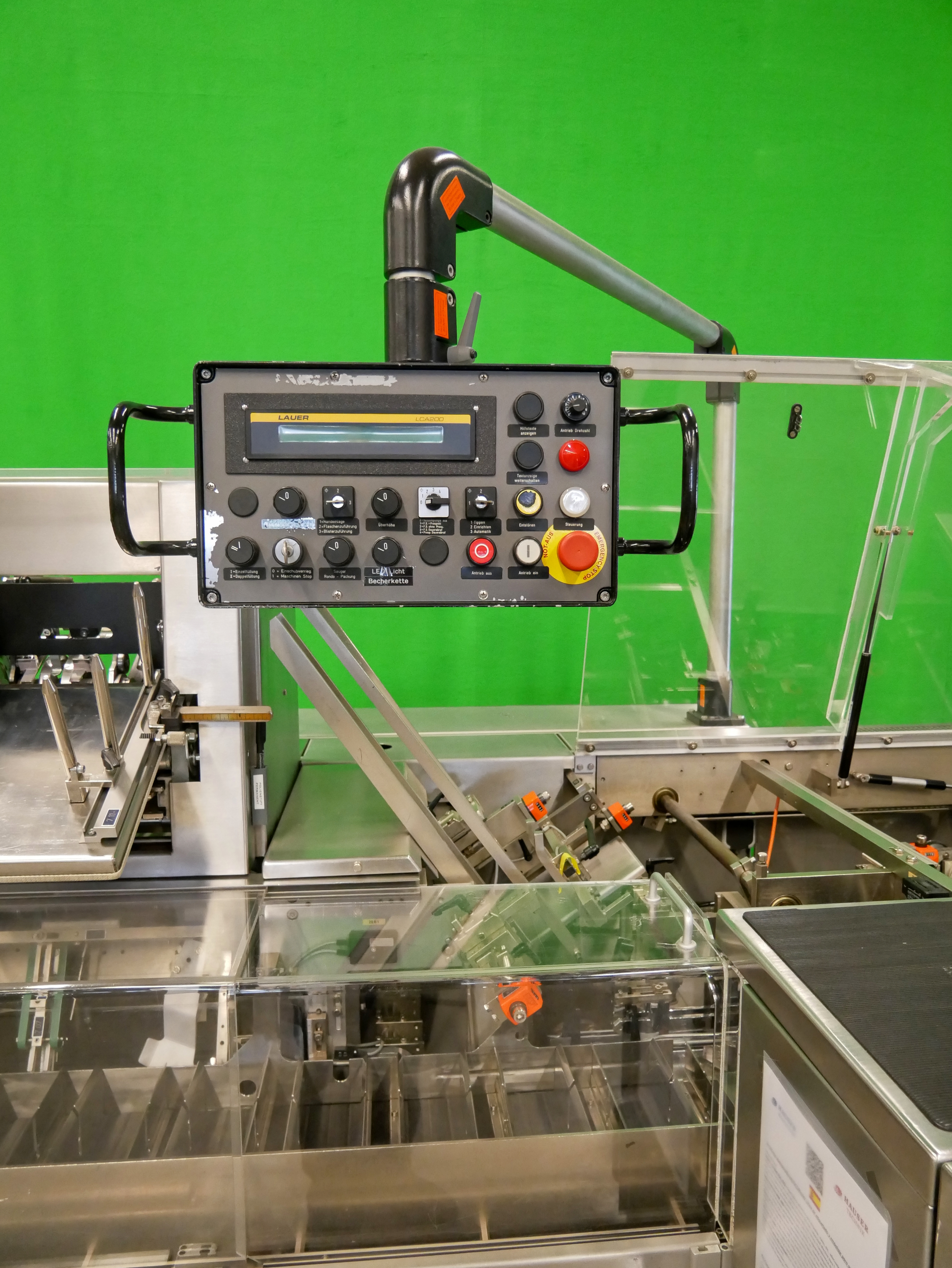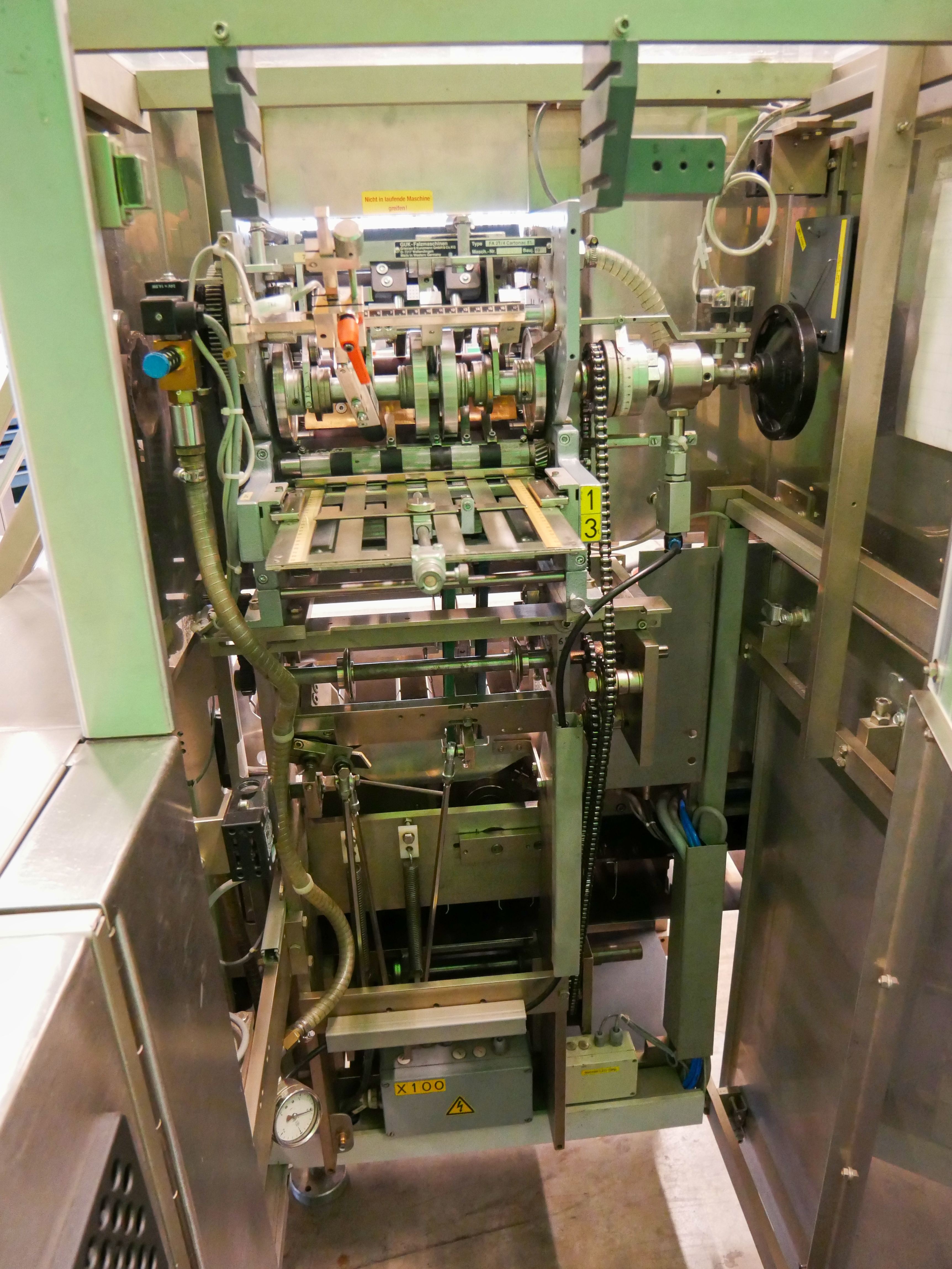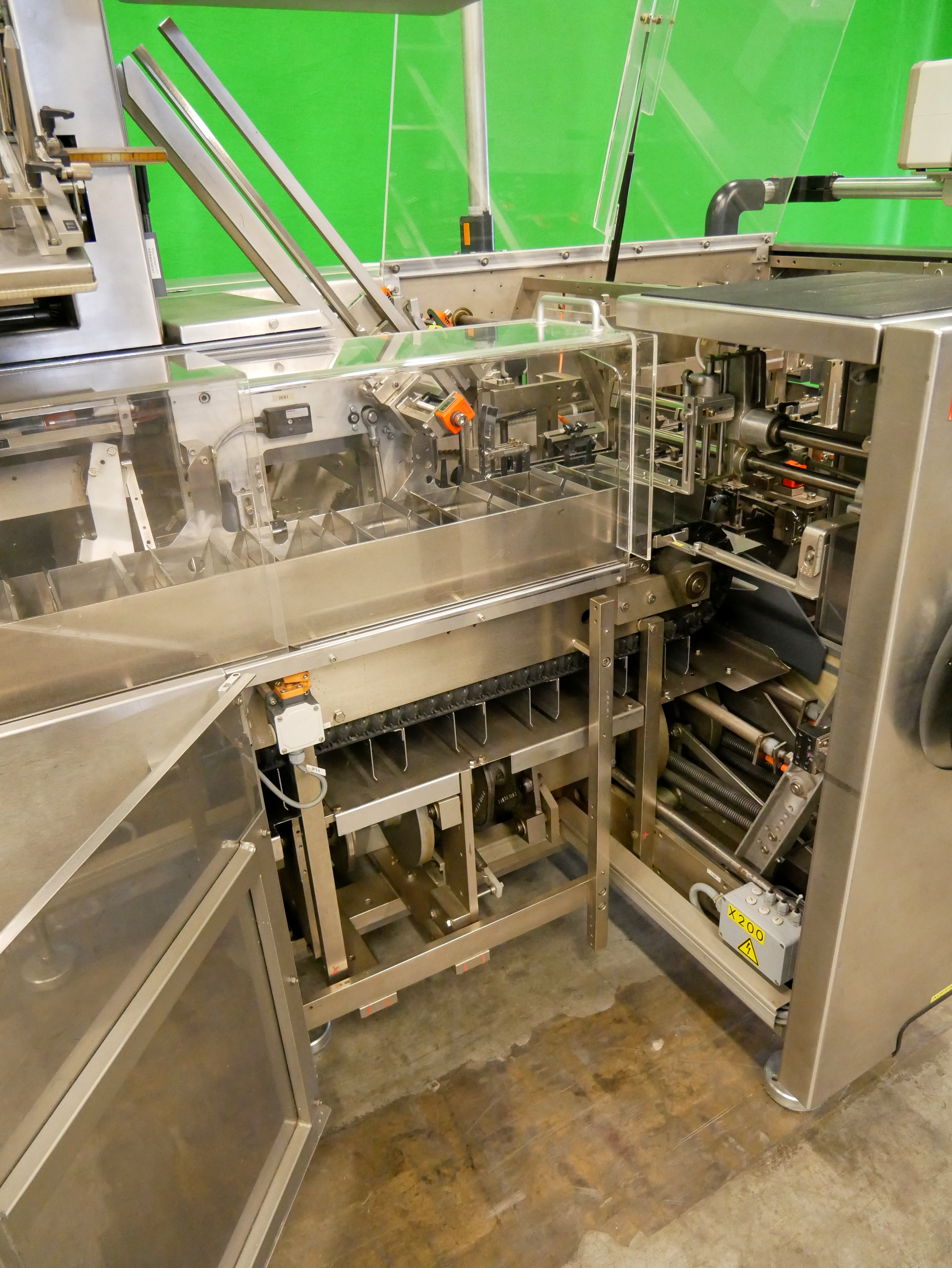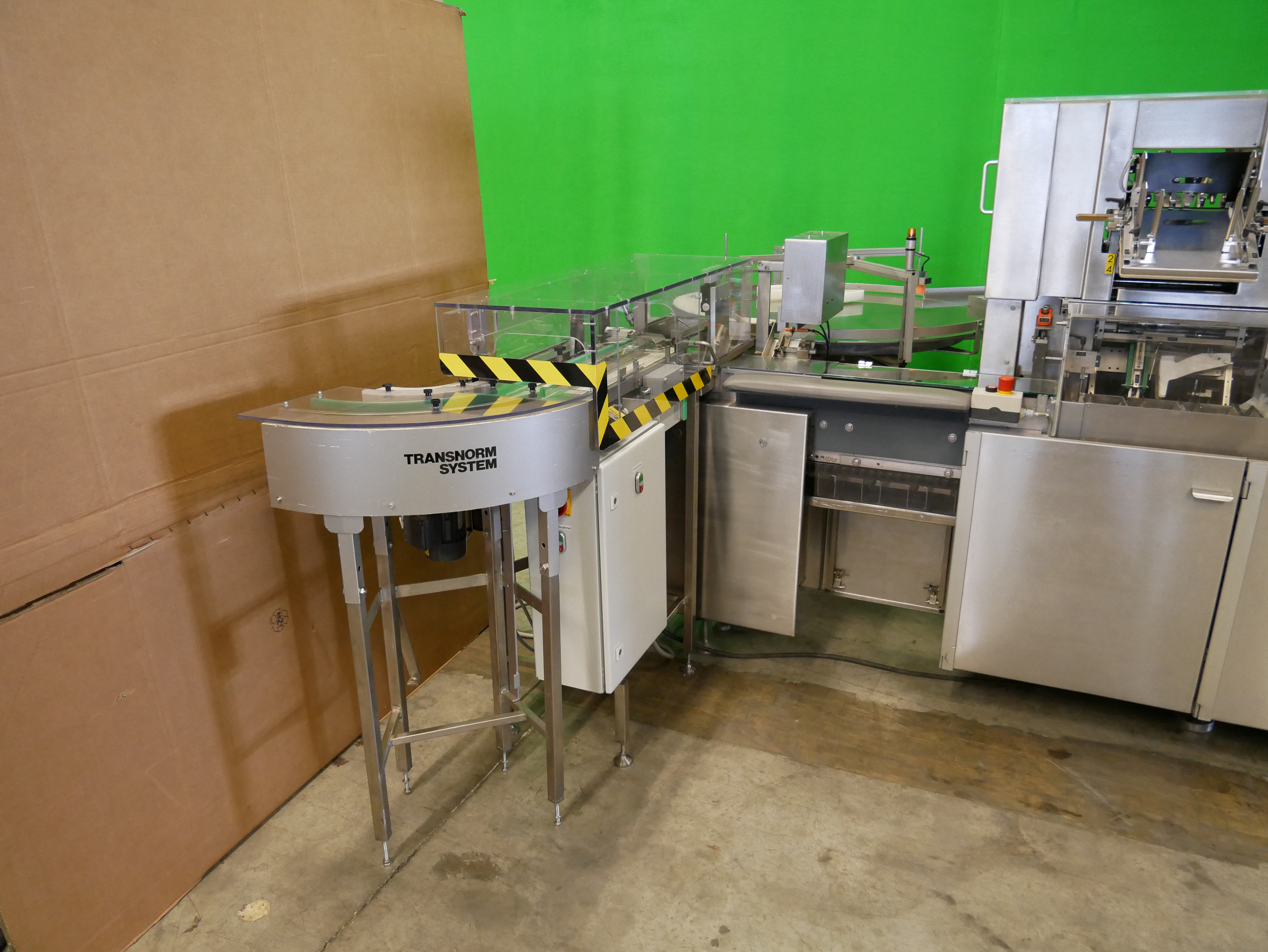 Bosch Car T5 Estuchadora horizontal para viales/botellas, blísteres, etc., con operación intermitente, alimentación de blísteres, etc. mediante Transform System cinta curva y cinta de alimentación (180 mm x 700 mm (ancho x largo de la cinta)) con apilador escalonado, alimentación de viales/botellas mediante Bosch URK 1200 mesa giratoria (diámetro de 1200 mm, adecuado para viales/botellas con un diámetro de 18-85 mm y una altura de 20 a 175 mm) con mesa de ingreso (490 x 580 mm (ancho x largo)) y dispositivo de inserción de botellas en la cadena de vasos de la estuchadora, rango de formato de estuche plegable desde mín. 20 x 16 x 60 mm (A x B x AL), hasta máx. 95 x 70 x 200 mm (A x B x AL), cierre con solapas desplazadas, incl. GUK FA21/4 plegadora de folletos desde pila (4 bolsas plegables, formato mín. 60 x 80 mm, máx. 210 x 300 mm, pliegue más pequeño de 15 mm), con codificador de solapas (estampado ciego, una cara, 3 líneas), pre-insertidor de folletos, Laetus Argus 6012 lector de códigos para estuches plegables y folletos con unidad de rechazo, capacidad hasta 100 estuches plegables por minuto, dimensiones de la máquina aprox. 3900 x 2500 mm (L x An), altura de la máquina aprox. 2000 mm
