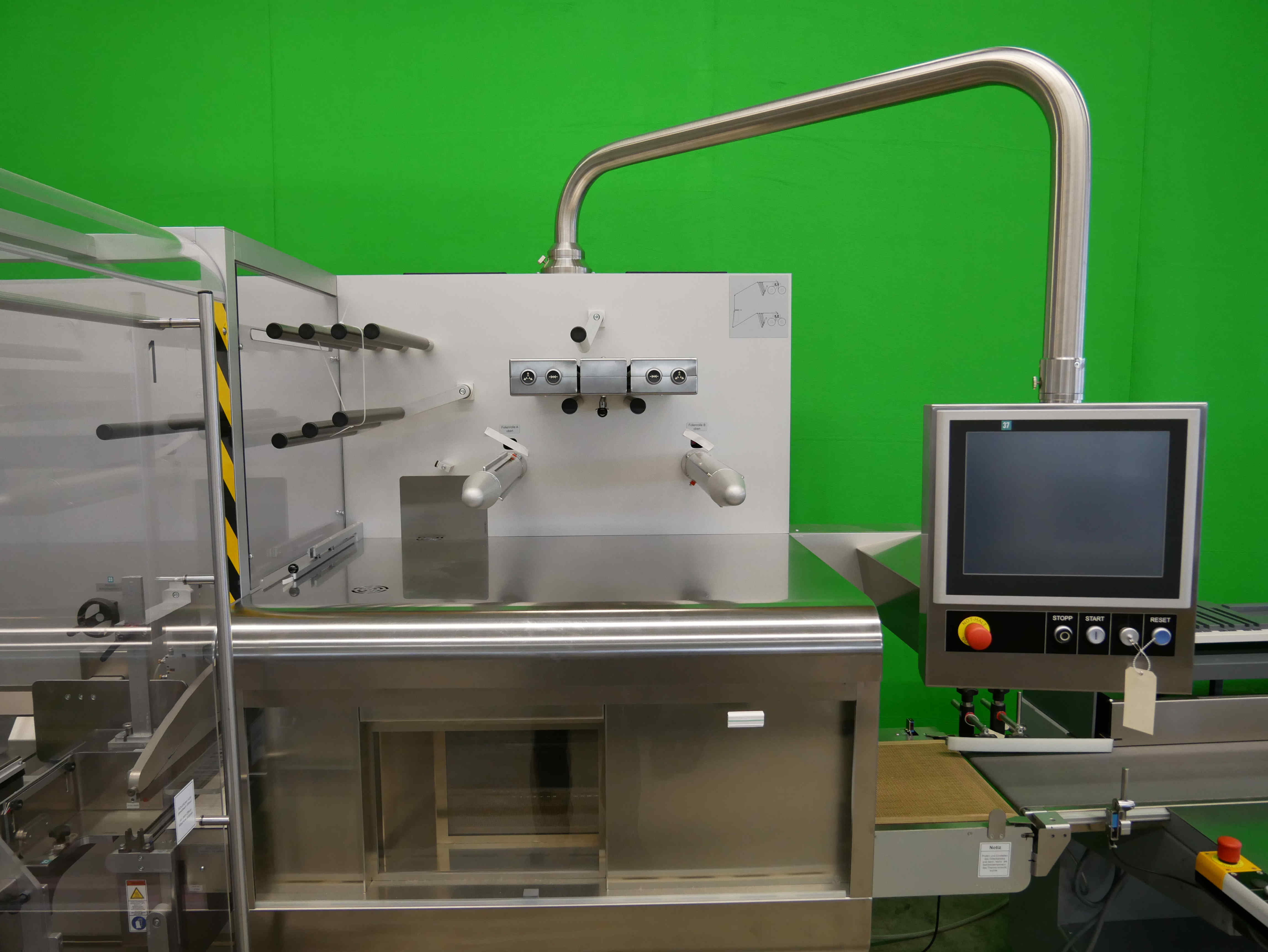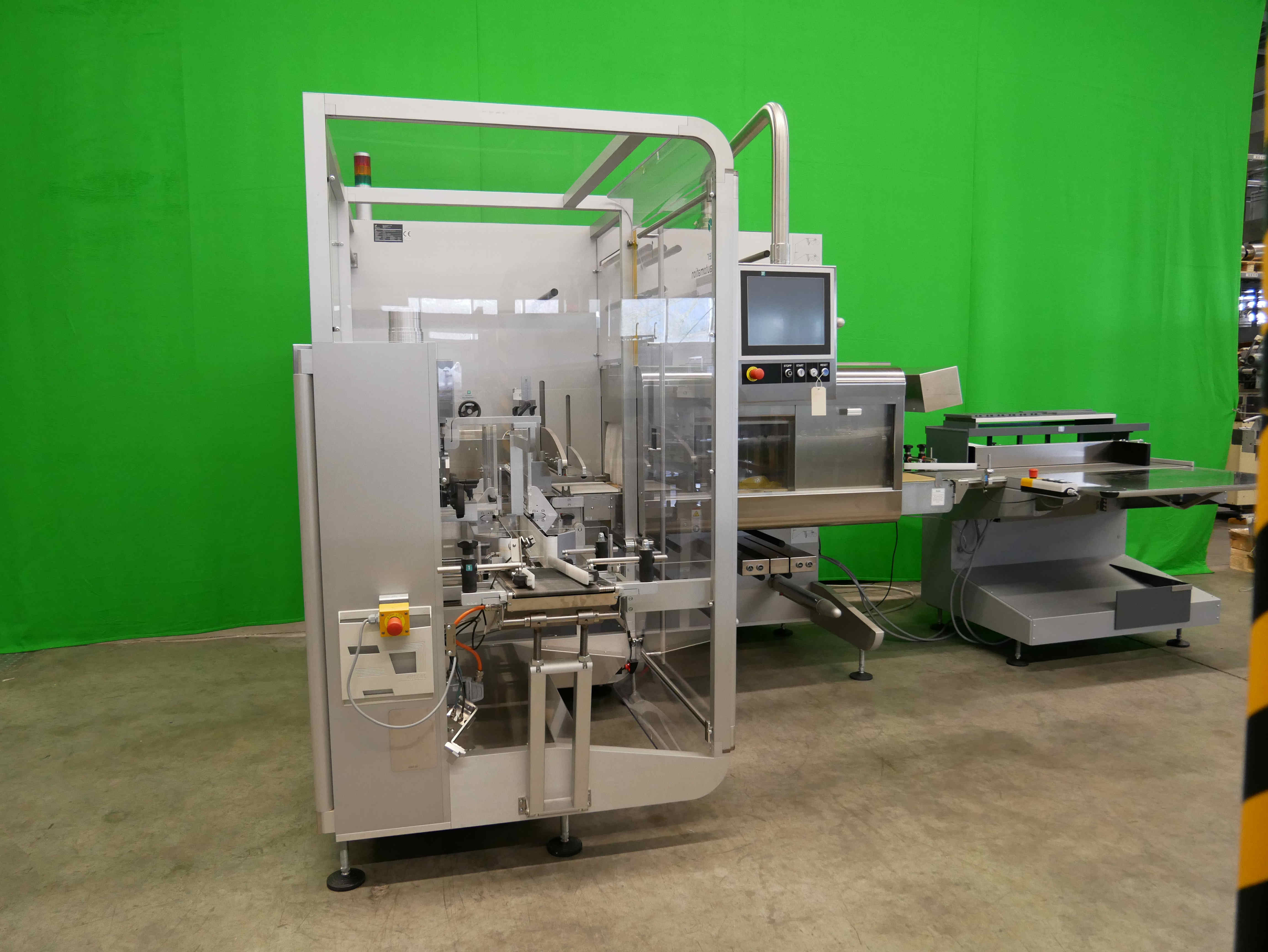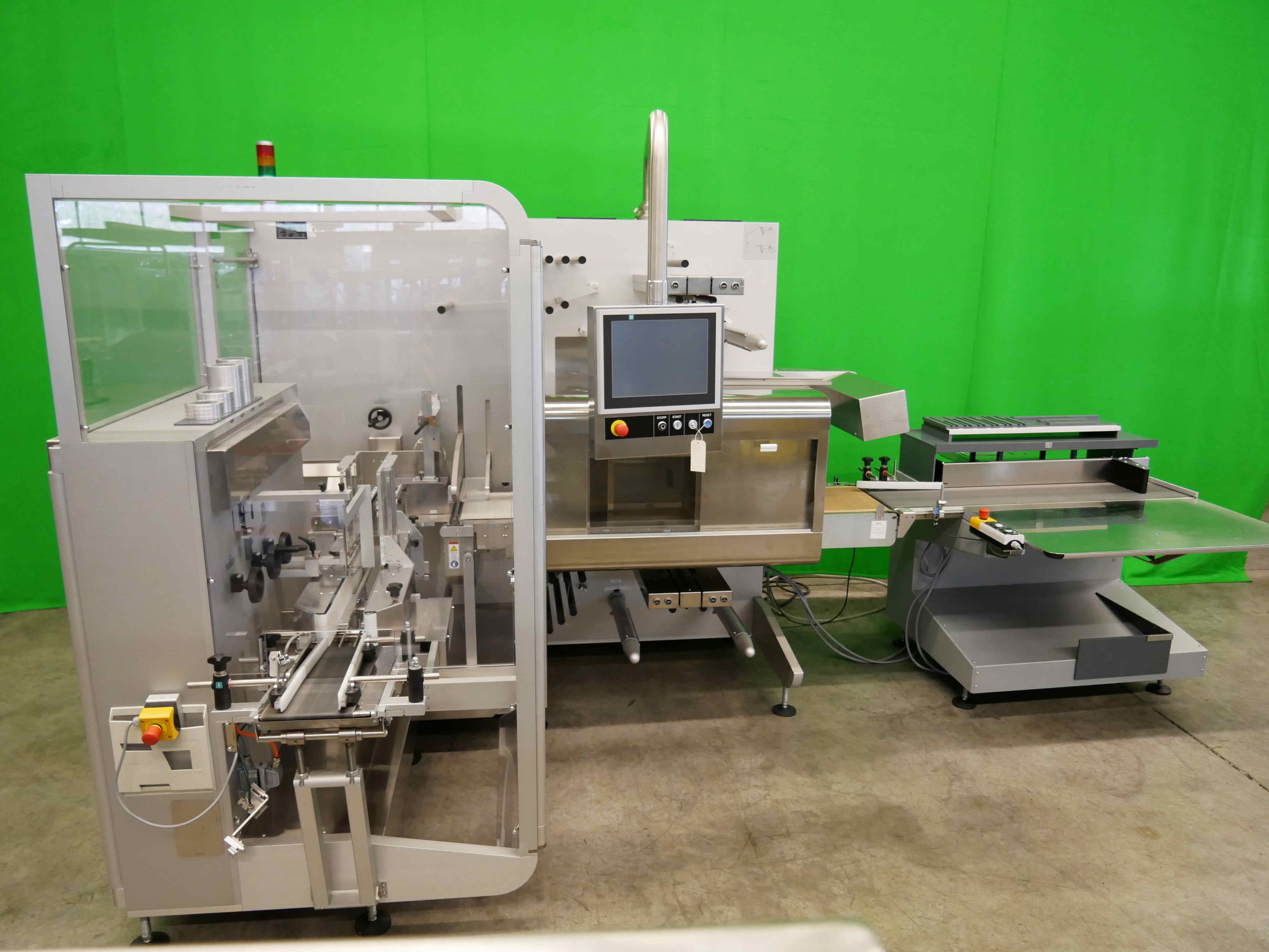 Pester PEWO-pack 450 Embaladora para cajas plegables, etc., incluyendo PEWO-therm túnel de retractilado y PEWO-collect mesa de embalaje