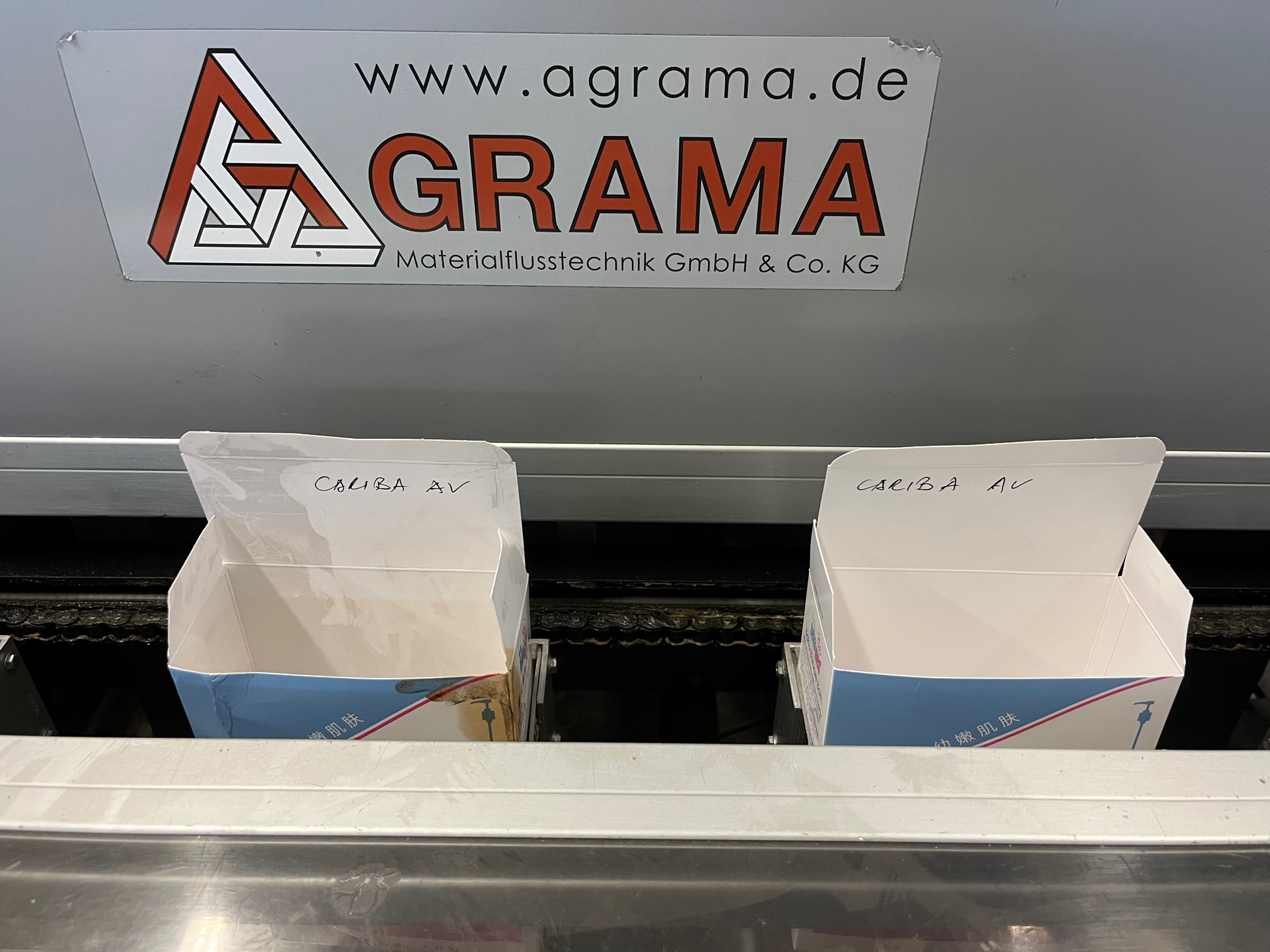 Cariba AV30/132 Estuchadora vertical, operación intermitente, cierre de solapas desplazadas, máquina móvil sobre ruedas, rango de formatos de estuches plegables: desde mín. 55 x 30 x 95 mm (AxBxC), hasta máx. 170 x 80 x 300 mm (AxBxC), capacidad de hasta 50 ciclos por minuto, conexión eléctrica 400 V/50 Hz, dimensiones de la máquina aprox. 2900 x 1600 mm (LxAn), altura de la máquina aprox. 1695 mm, peso neto de la máquina aprox. 900 kg.