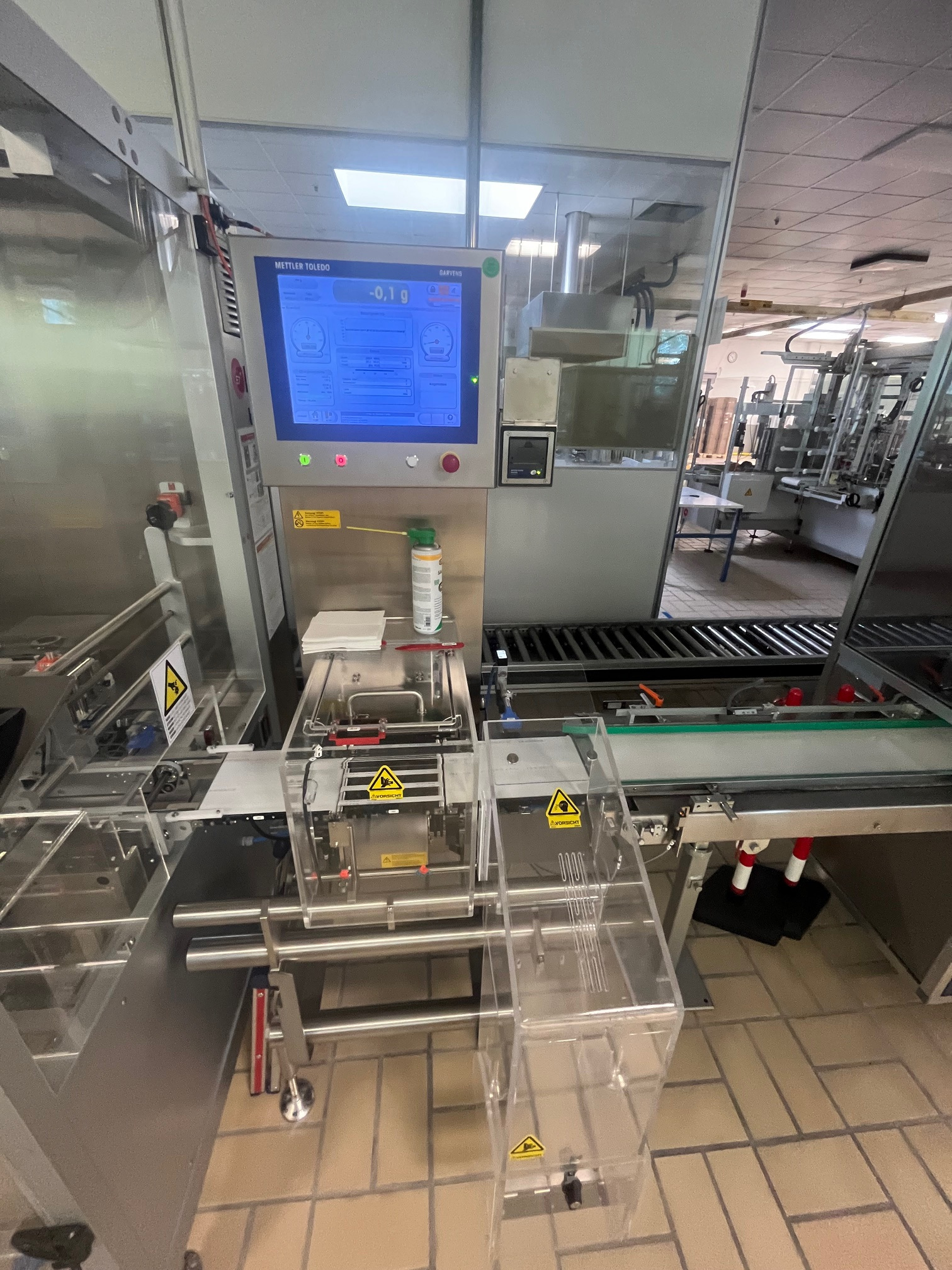 Mettler Toledo Garvens C3570 Controladora de peso en linea con unidad de rechazo y recipiente colector e impresora para imprimir la evaluación estadística, rango de pesaje de 24 a 200 g, e=0,1 g, d=0,1 g, conexión eléctrica 100-240 V, 50-60 Hz, velocidad máx. de la cinta 50 m/min, capacidad máx. 180 piezas/ min, dirección de transporte de izquierda a derecha,