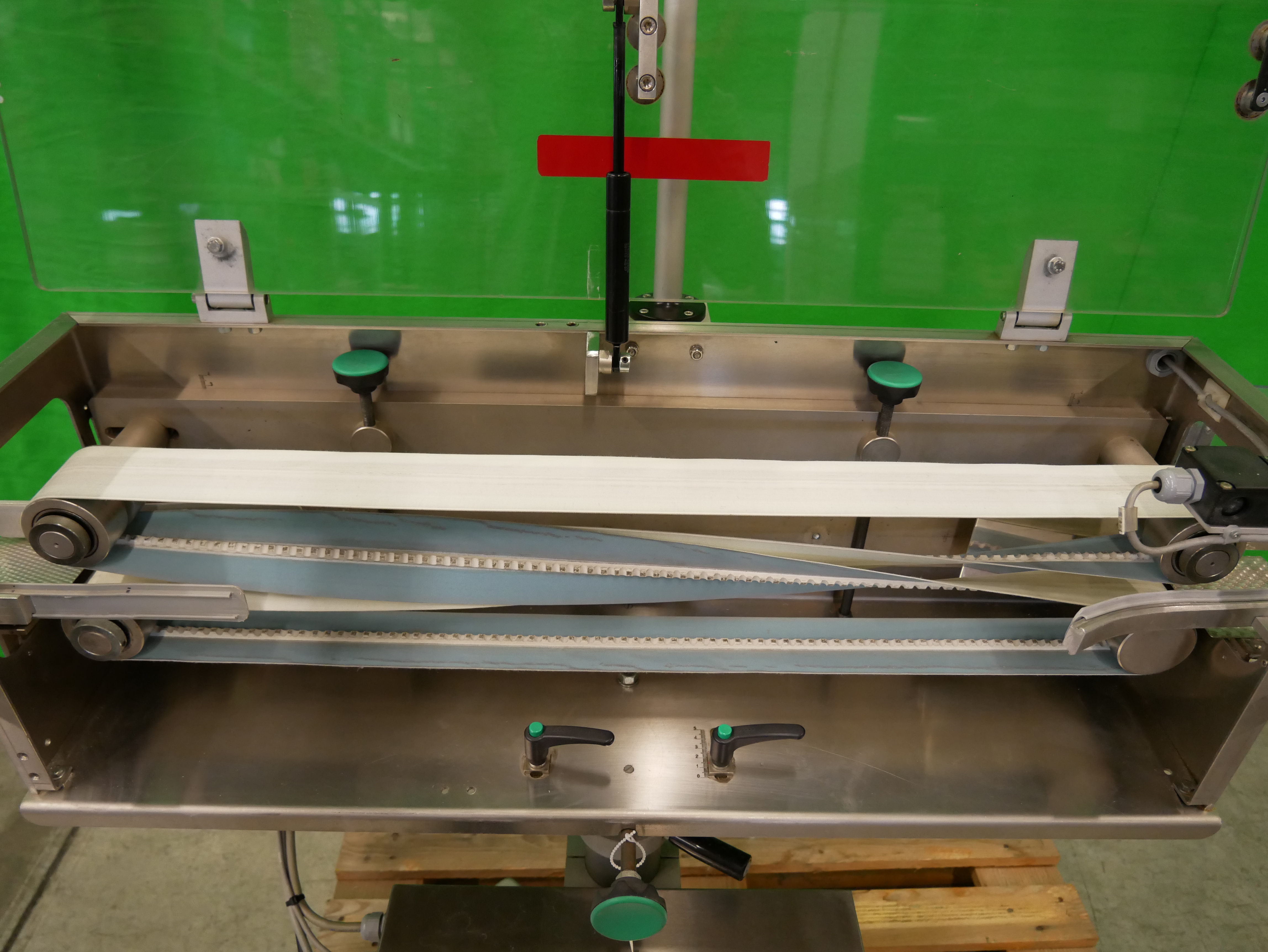 Marchesini 3G20100610 Cinta volteadora de cajas plegables, ancho de cinta 70 mm, conexión eléctrica 1x220V+N+PE/50Hz, consumo máximo de corriente 2 A, interrupción máxima 6 kA, dimensiones de la máquina aprox. 1300 x 700 mm (LxAn), altura de la máquina aprox. 1600 mm, peso neto de la máquina aprox. 130 kg.
