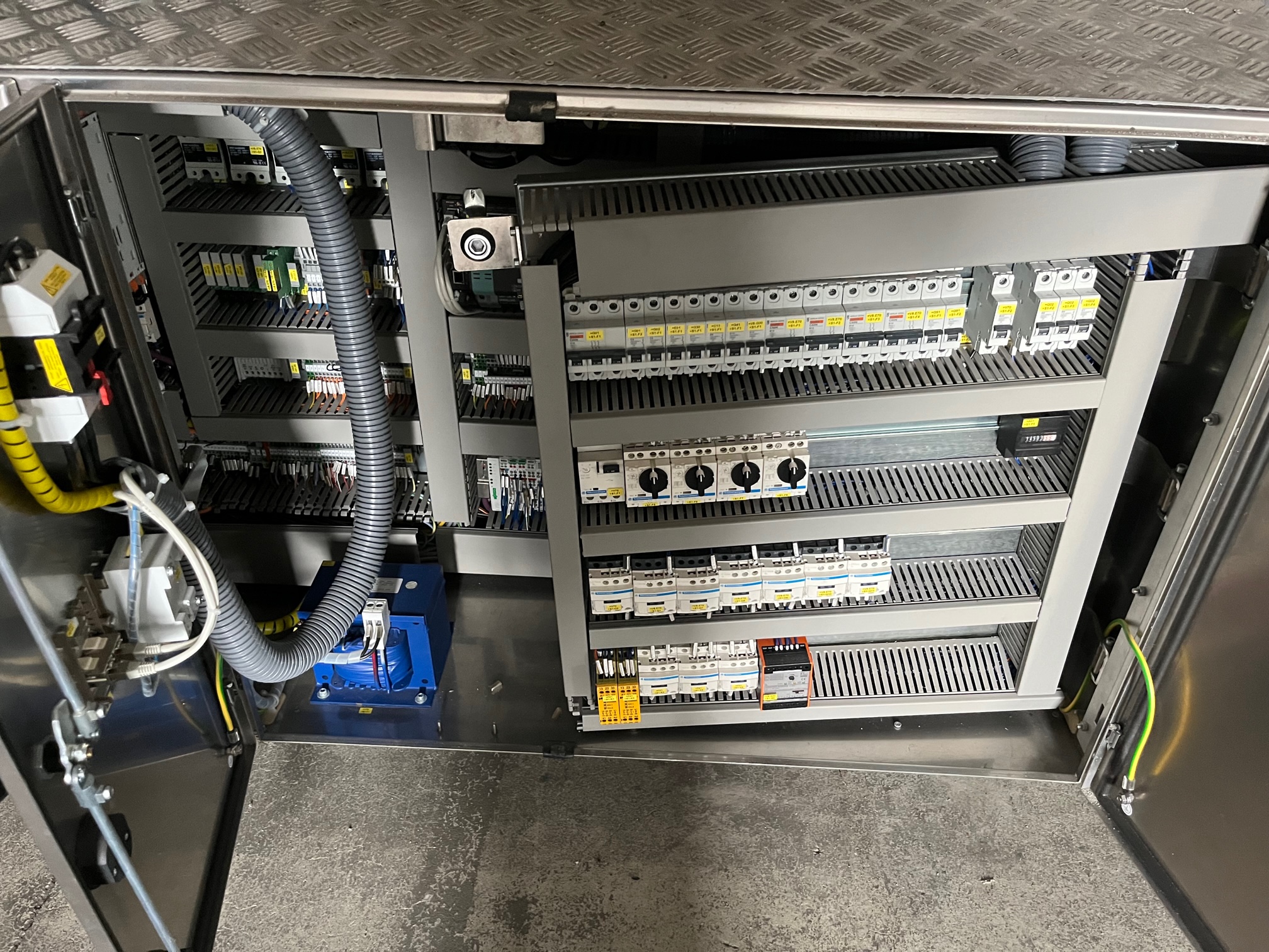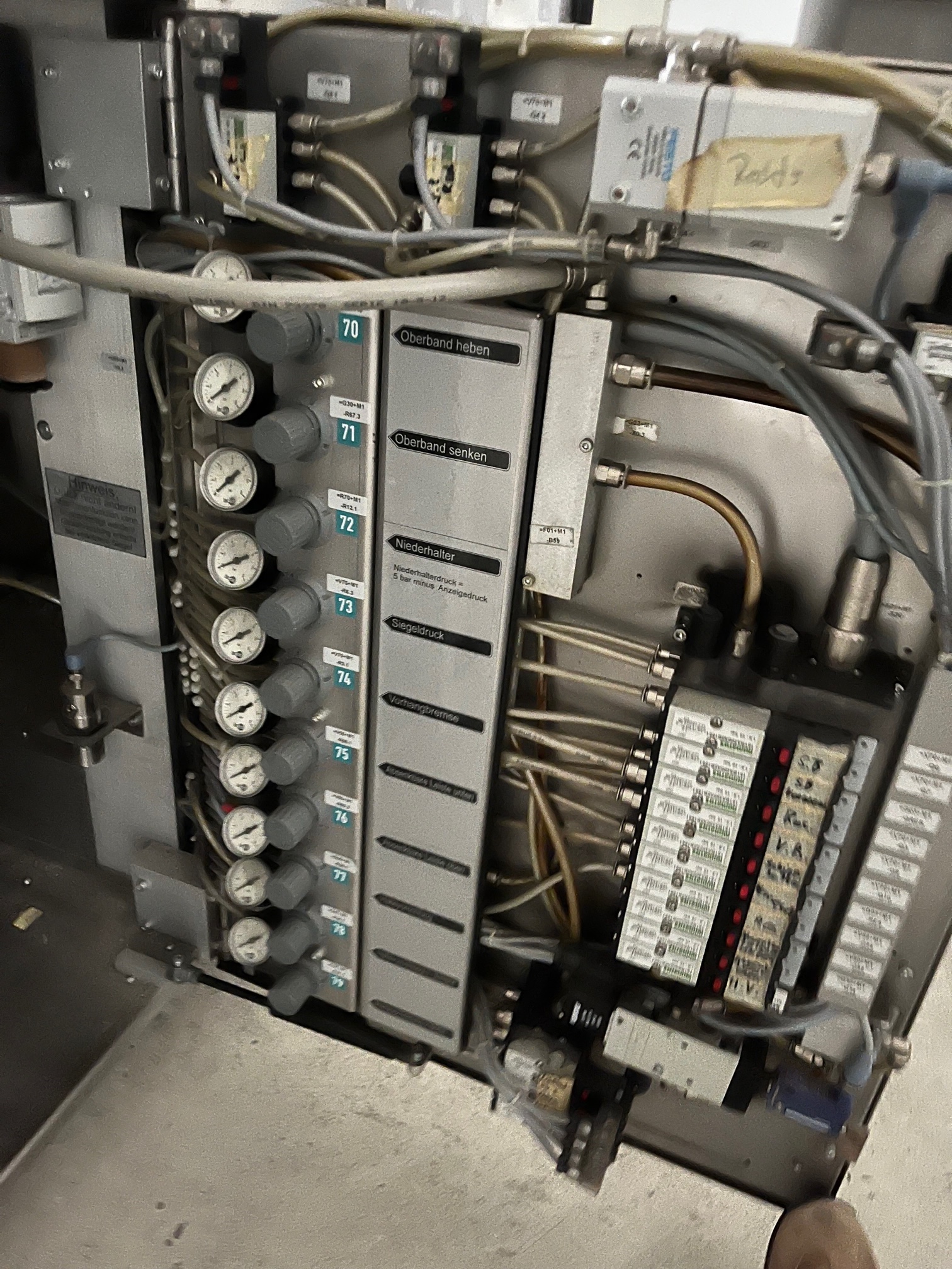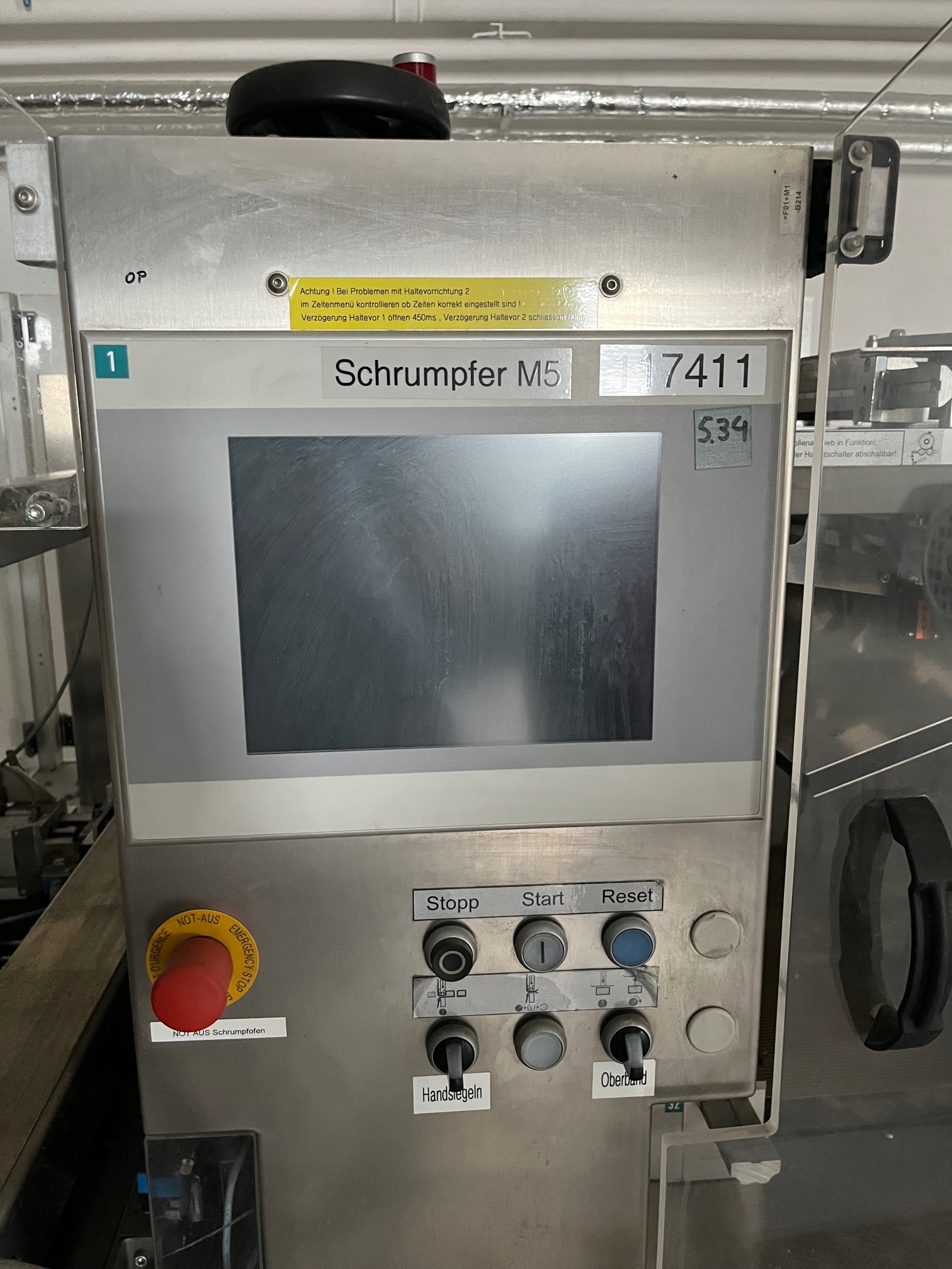 Pester PEWO-pack 800 + PEWO-therm III 800 E Emballage rétractable pour bouteilles/boîtes aérosols, entrée de bande à angle droit avec station de regroupement, transport d'évacuation et refroidissement (en cas de panne, l'intérieur complet, y compris les gaines de circulation d'air et de chauffage, est refroidi et un transport d'évacuation pneumatique est en outre activé au moyen d'un moteur à air.), largeur de soudure max. 800 mm, largeur d'entrée du produit max. 850 mm, longueur d'entrée du produit max. 350 mm, hauteur d'entrée du produit max. 250 mm, hauteur d'entrée/sortie 900-950 mm, type de film PE, largeur du film 50-800 mm, épaisseur du film 0,025-0,1 mm, diamètre du rouleau max. 300 mm, capacité jusqu'à 25 paquets par minute, raccordement électrique 3x400V/50-60Hz, puissance absorbée 16,8 kW, pression de service env. 5 bar, surface de base de la machine env. 3670 x 1350 mm (Lxl), poids net de la machine env. 700 kg, autrefois utilisé pour l'emballage de bouteilles et de boîtes d'aérosols