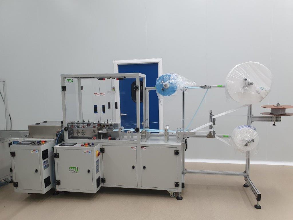 - Machine à masques modèle AP150, année 2020, pour le pliage des masques en 3 couches, l'introduction du fil pour le clip nasal, la coupe des masques