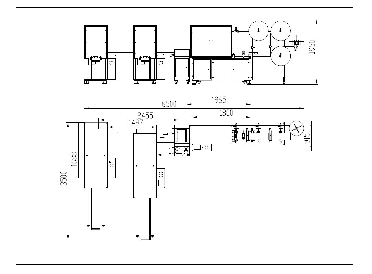 Dimensions de la machine : 6700 (L) x 3600 (l) x 2000 (H) mm