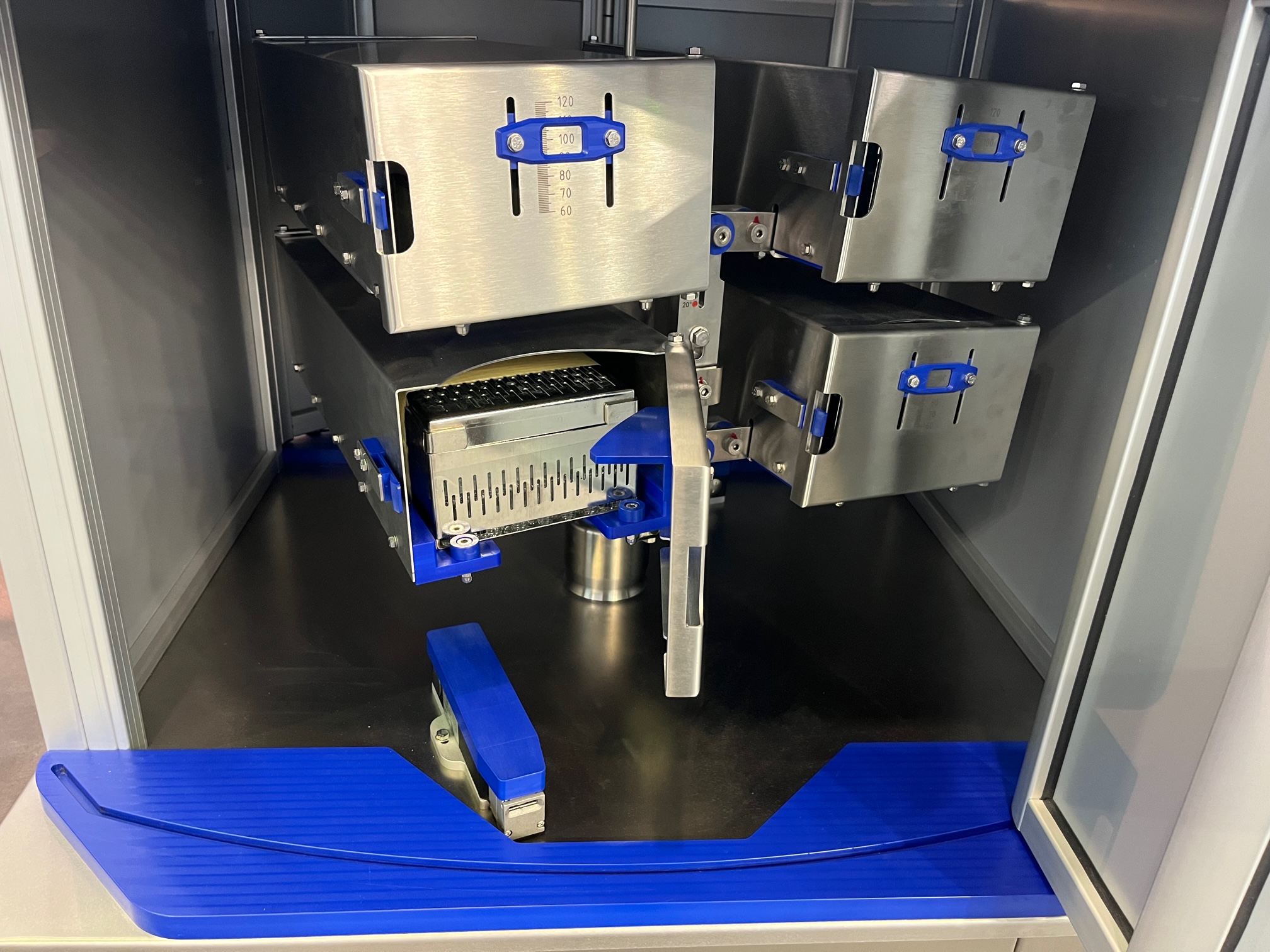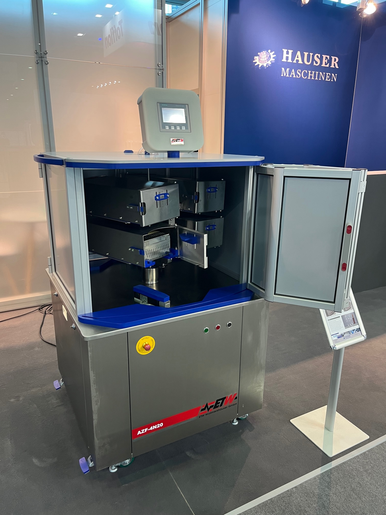 Centrifugeuse pour ampoules ETW modèle AZF-4N20, système semi-automatique de centrifugation pour l'élimination des résidus de produit de la broche des ampoules tout en préservant le produit, afin d'éviter les faux diagnostics lors du contrôle optique des ampoules, en particulier le sous-remplissage.