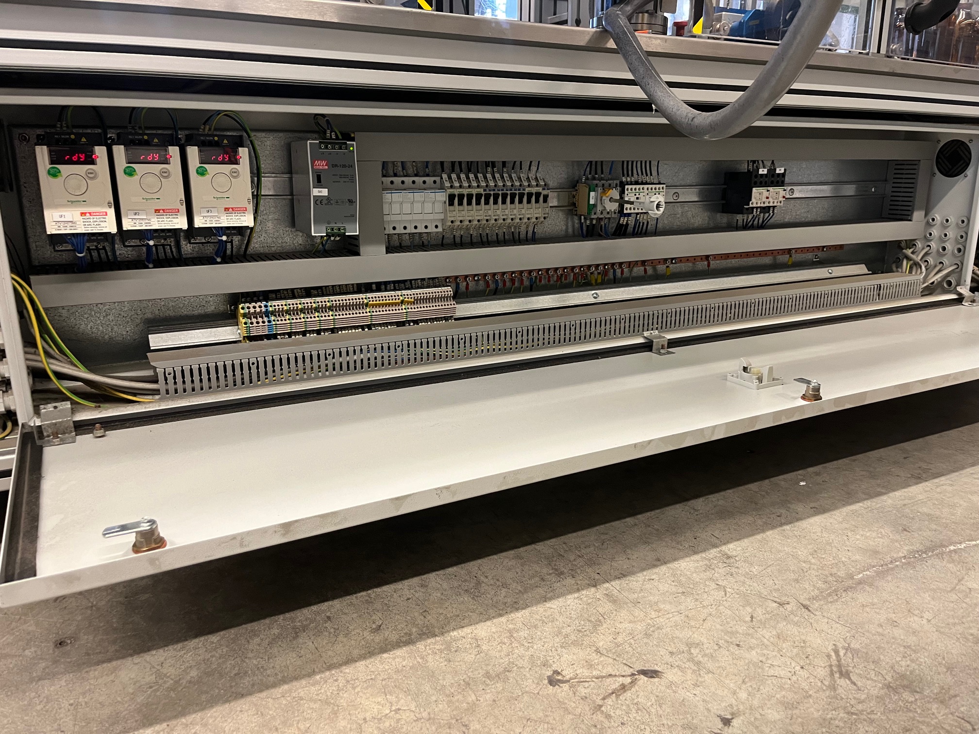 PackLab WING REPC FWB60 Etiqueteuse adhésive pour l'étiquetage circulaire, recto et verso de récipients ronds, cylindriques, ovales ou rectangulaires, 2 distributeurs d'étiquettes de type M60 DX 250, vitesse de rotation nominale 60m/min, diamètre extérieur du rouleau d'étiquettes max. 400 mm, diamètre du noyau du rouleau d'étiquettes 45-75 mm, largeur de la bande porteuse max. 250 mm, largeur d'étiquette possible (dans le sens de la marche) de 15 à 480 mm, hauteur d'étiquette max. possible env. 245 mm, largeur de la bande 80 mm, bande de tête réglable en hauteur, bande de massage d'une hauteur d'env. 110 mm, raccordement électrique 400V/50Hz/3PH, surface de base de la machine env. 4140 x 3000 mm (Lxl), hauteur de la machine env. 1900 mm, poids net de la machine env. 950 kg