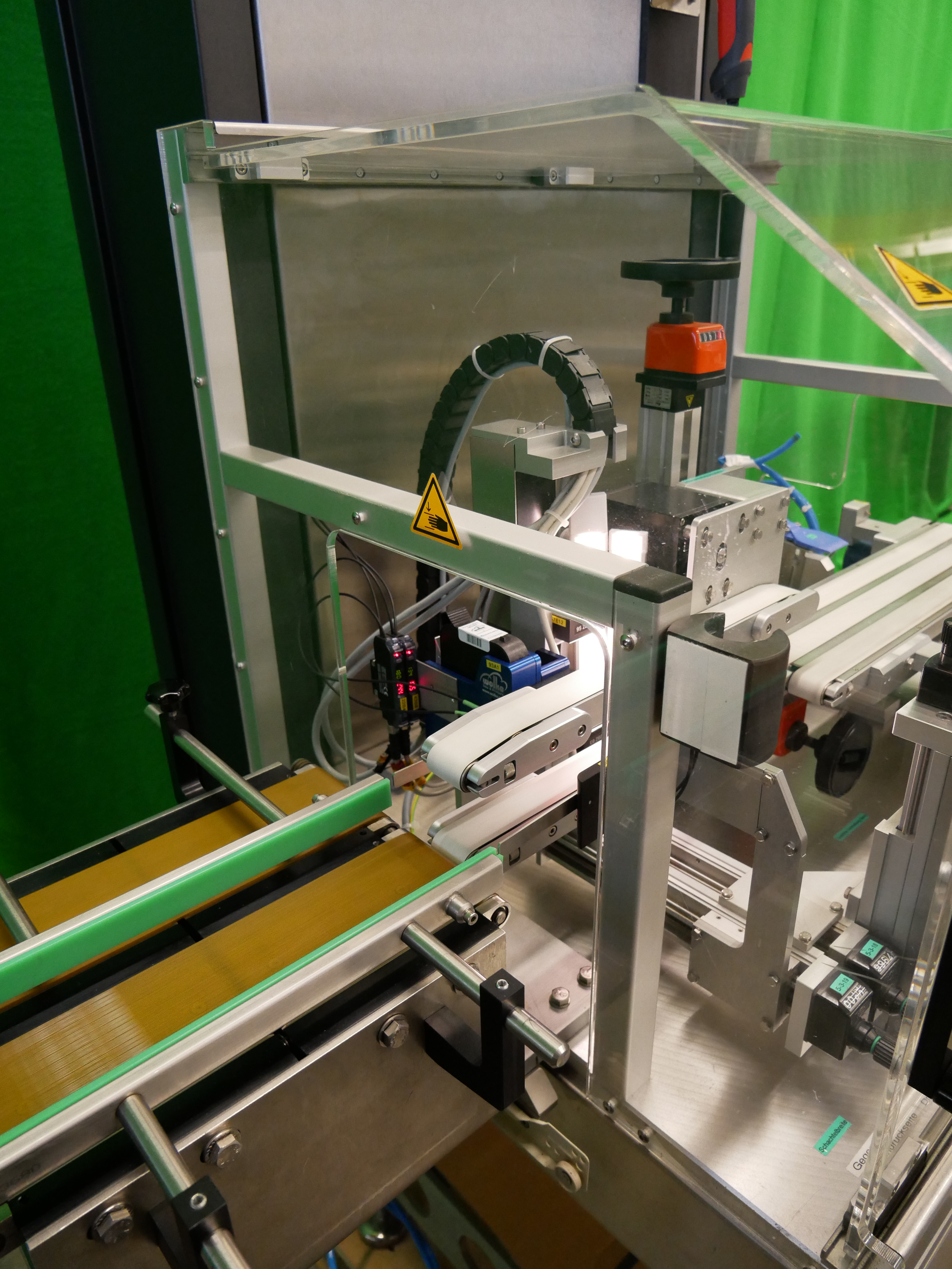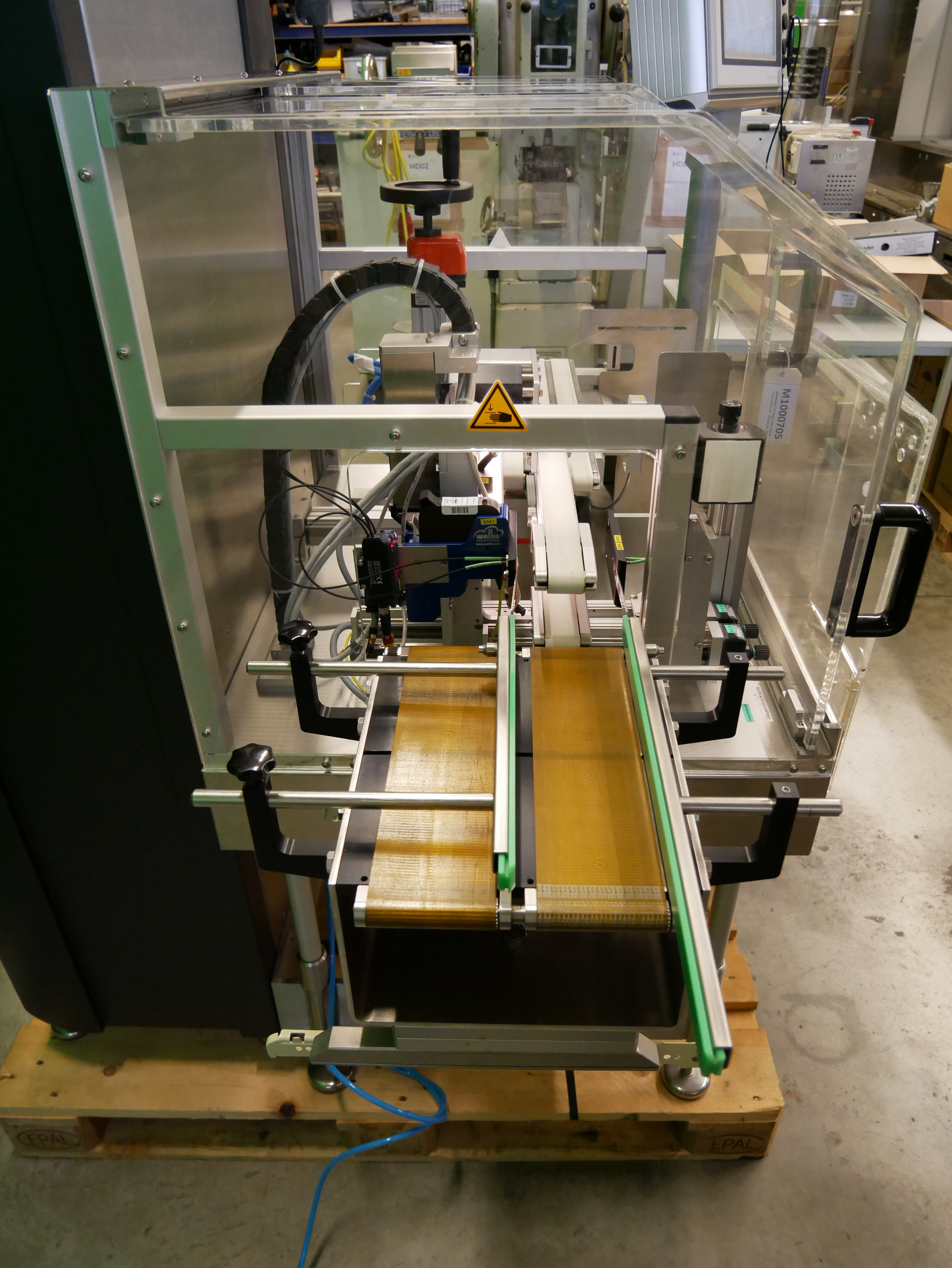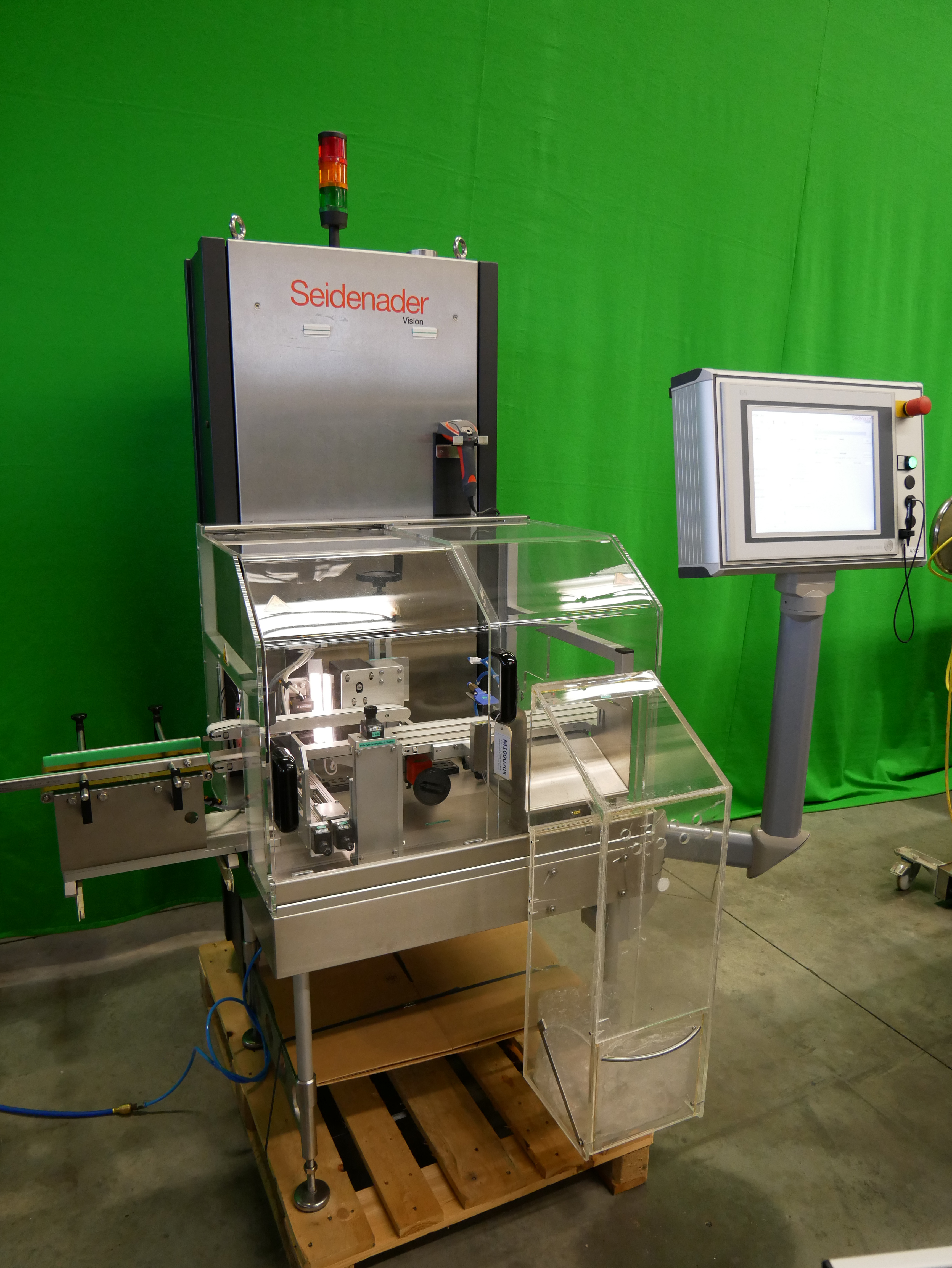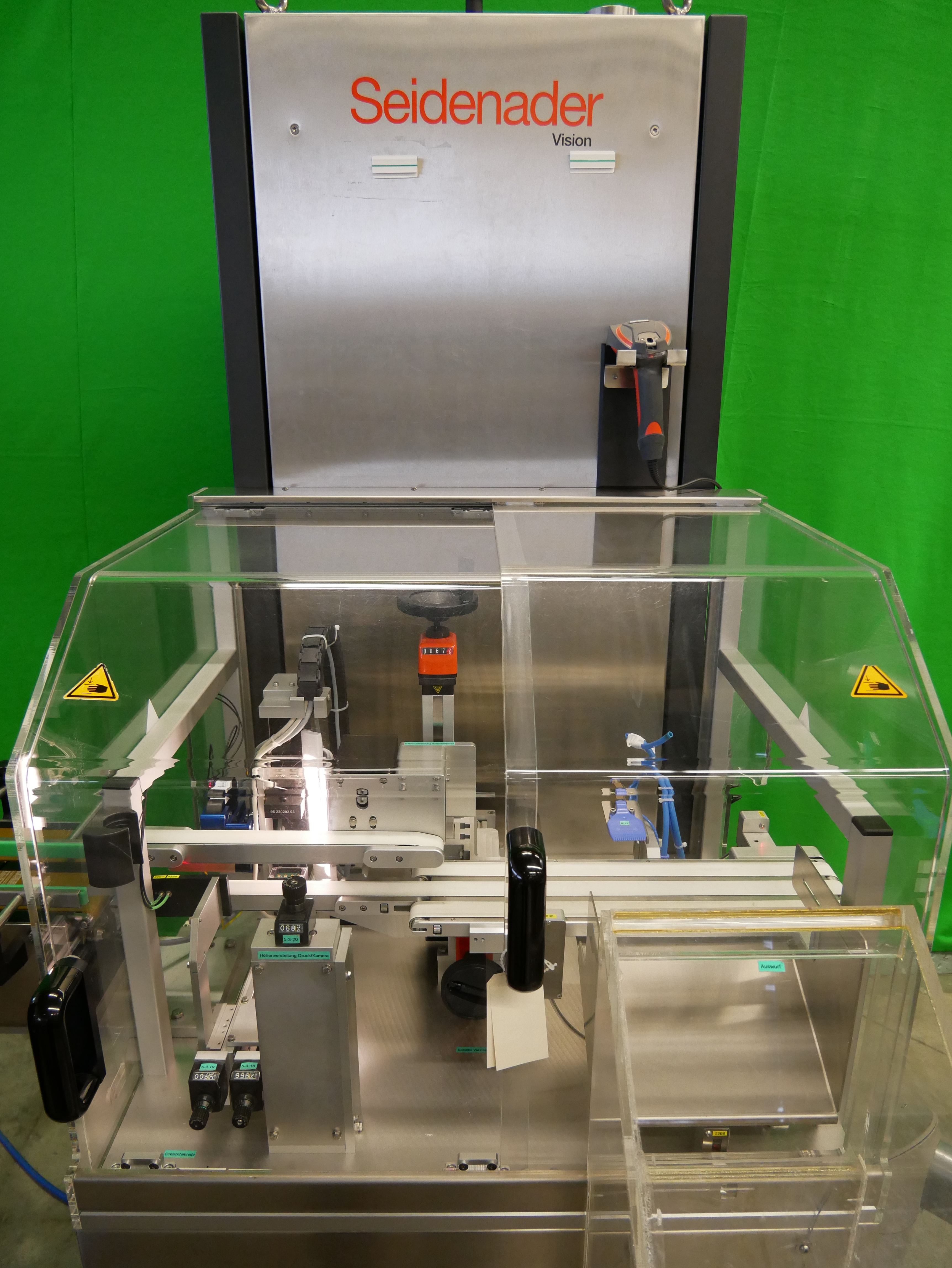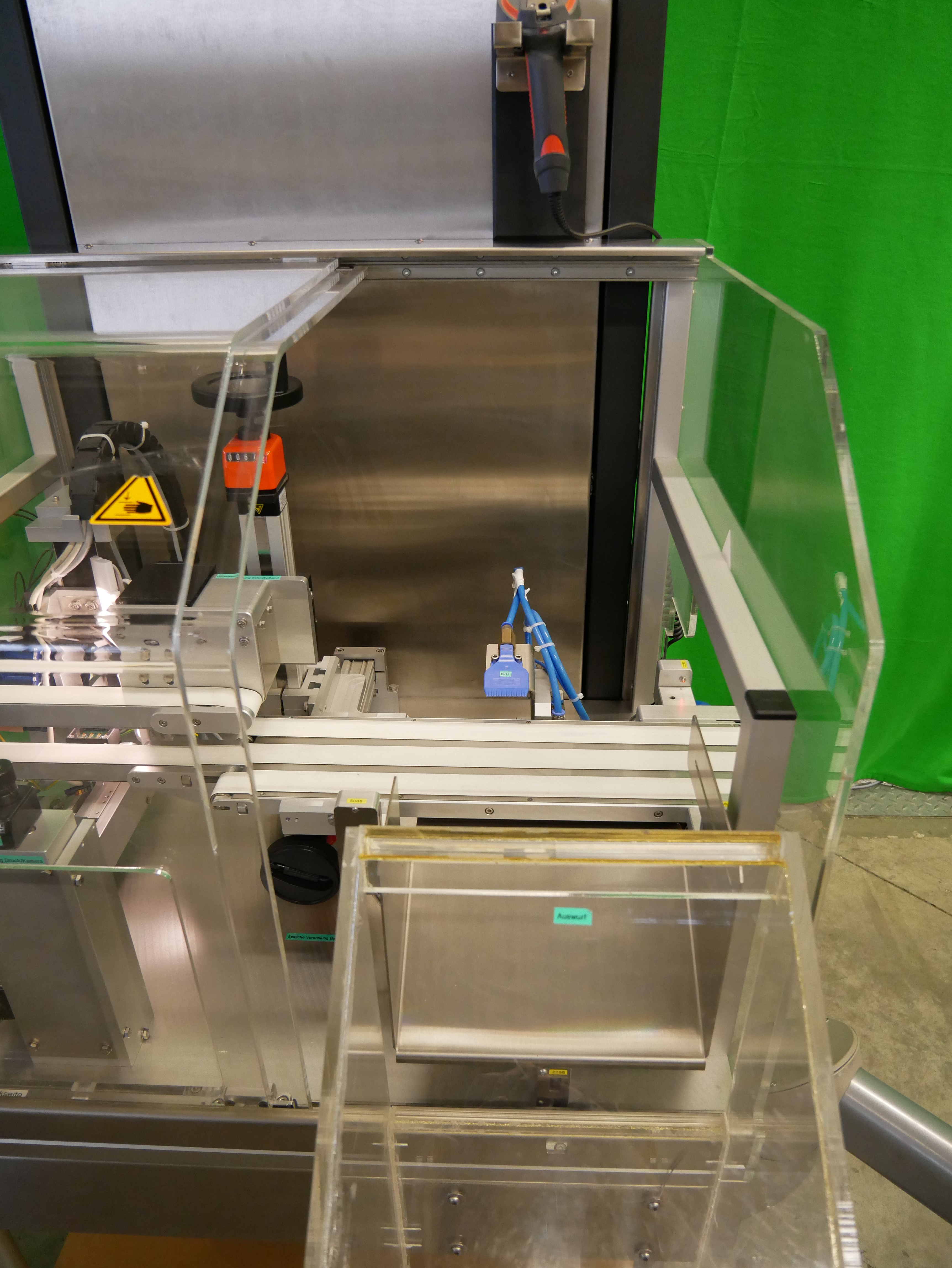 Seidenader T&T Single Unit (23910A) Track & Trace System pour le marquage et la vérification de boîtes pliantes, etc. pour la sérialisation et l'agrégation (Track & Trace) ; les codes de produits et les données variables (numéro de série, lot, date de péremption, code Datamatrix, French Coding, etc.) imprimés sur la boîte pliante sont vérifiés par une caméra quant à leur exactitude et leur qualité, y compris une imprimante à jet d'encre Wolke m600 advanced avec cartouches d'impression HP (hauteur d'impression max. 12,7 mm), une station d'impression avec deux têtes d'impression à l'arrière, éjection des mauvais produits, bande d'entrée d'une longueur d'environ 300 mm et d'une largeur d'environ 185 mm, unité de prise en charge des boîtes pliantes avec bande inférieure et bande supérieure réglable en hauteur, longueur des boîtes pliantes (dans le sens de la marche) max. 220 mm, largeur de passage max. 200 mm, sens de marche de gauche à droite, scanner manuel pour l'enregistrement et le désenregistrement, raccordement électrique 230V + N + PE / 50Hz / 1,0 kW, surface de base de la machine env. 1414 x 1322 mm (L+P), hauteur de la machine env. 2135 mm, poids net de la machine env. 700 kg