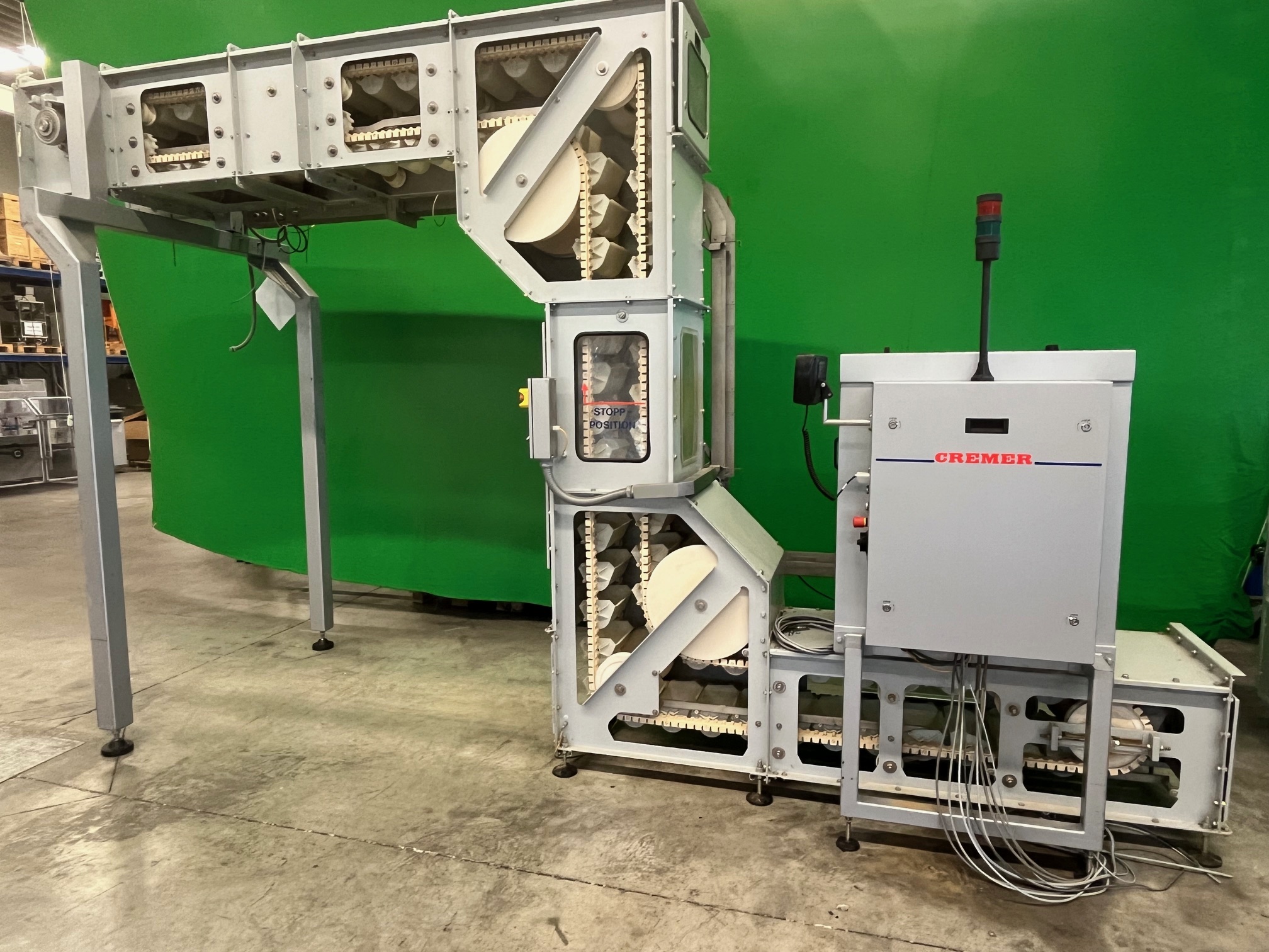 Système de comptage de produits Cremer TQF-4100 comprenant un élévateur à godets pour alimenter les machines d'emballage (par exemple, VFFS, etc.)