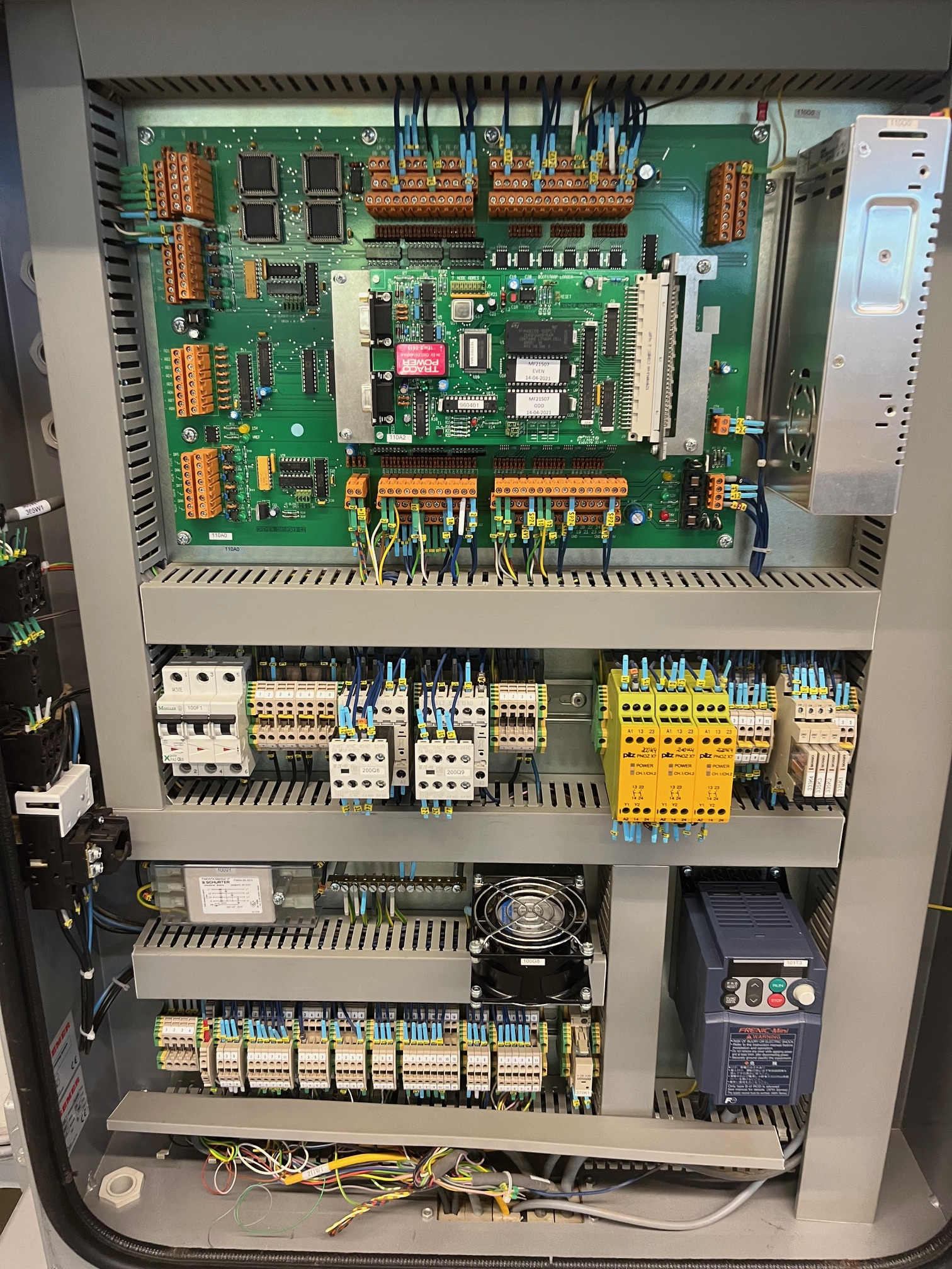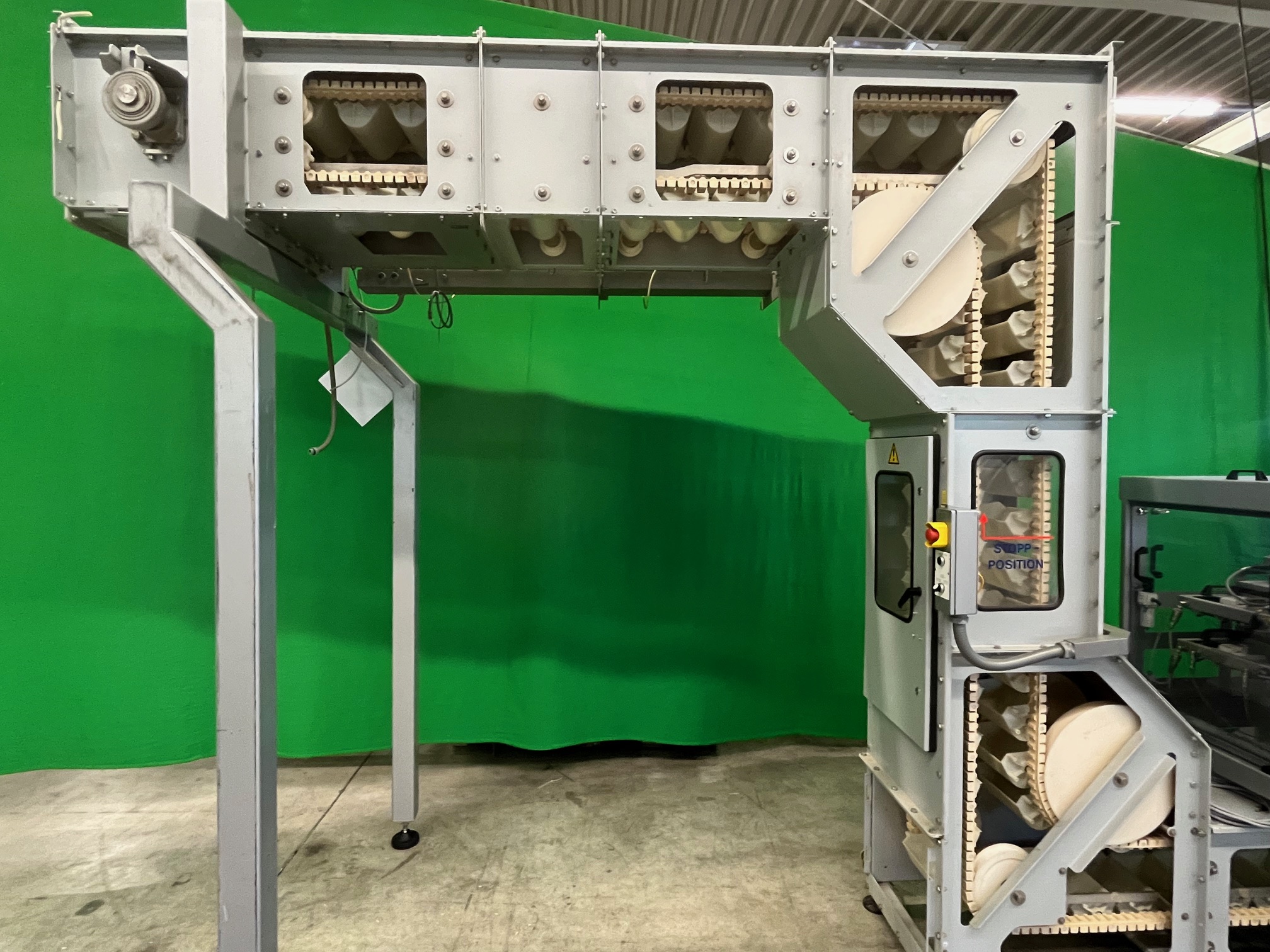 Système de comptage de produits Cremer TQF-4100 comprenant un élévateur à godets pour alimenter les machines d'emballage (par exemple VFFS, etc.), compteur à 4 voies avec canaux de détection infrarouge séparés, rejet automatique en cas de sous-comptage ou de surcomptage, clavier pour la configuration, l'utilisation, la surveillance et la gestion de la recette du compteur, raccordement électrique 3x400V/3Ph/50Hz, consommation électrique 700 VA, alimentation en air comprimé 6-8 bars, pression de service 6 bars