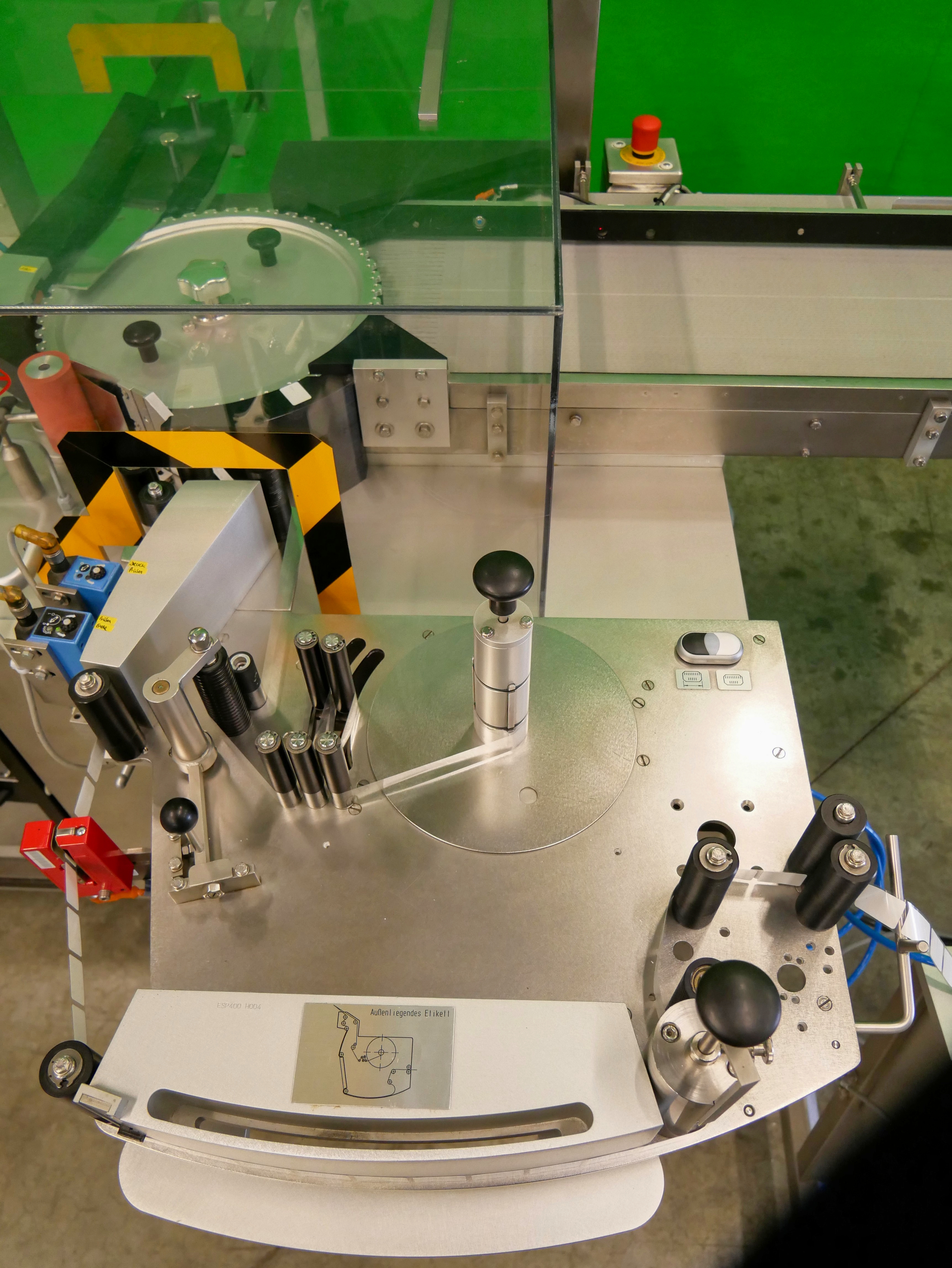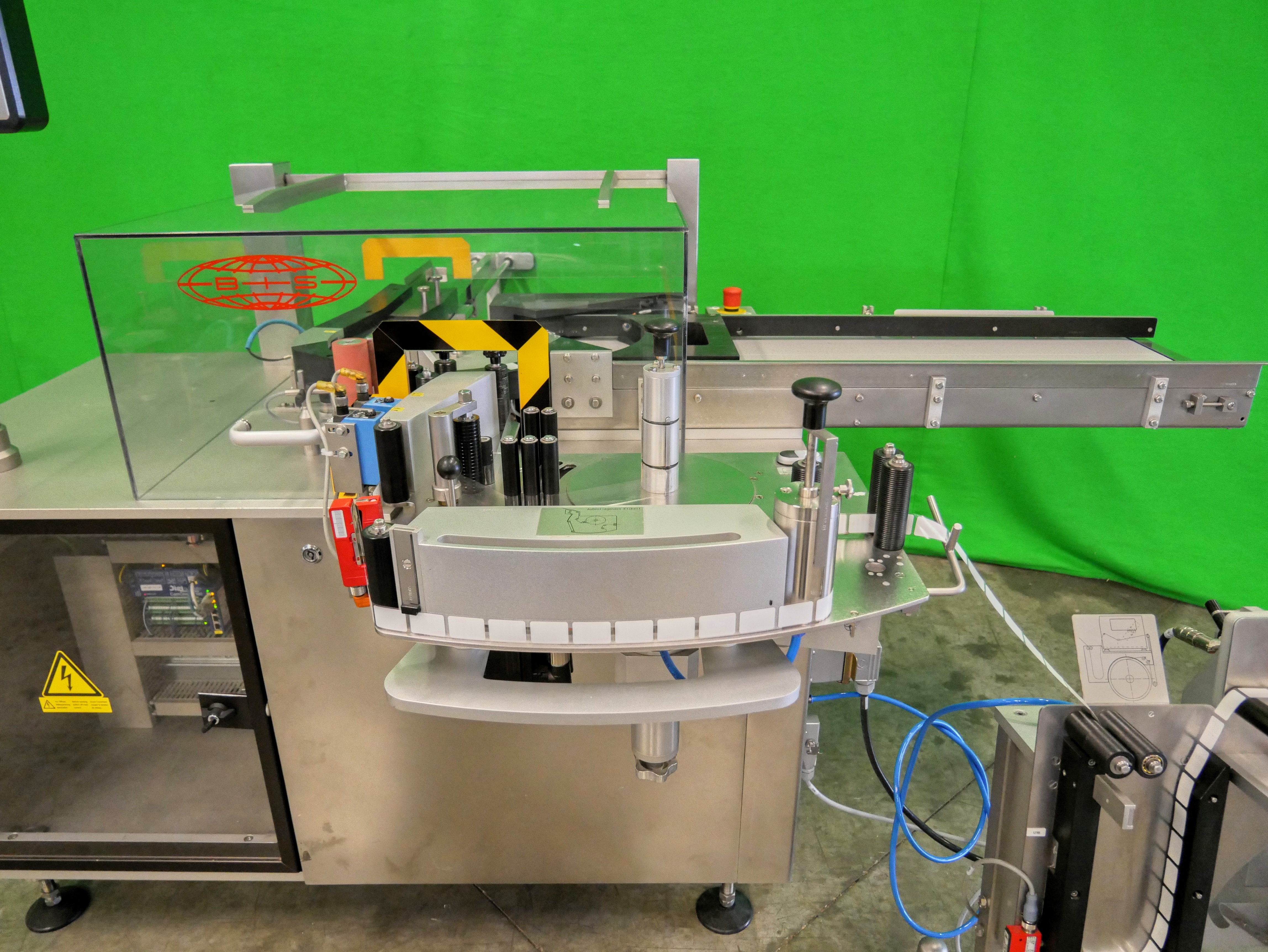 Etykieciarka Bausch + Ströbel ESA 1001 do fiolek, ampułek itp. do etykiet samoprzylepnych, odpowiednia do opakowań o średnicy od 6mm to 36mm i wysokości od 20mm do 140mm. Dostarczana z częściami do opakowania o średnicy 9,75 mm i wysokość 48 mm. Wydajność zależna od wymiaru etykietowanego opakowania oraz etykiety, max 12,000 na godzinę.
