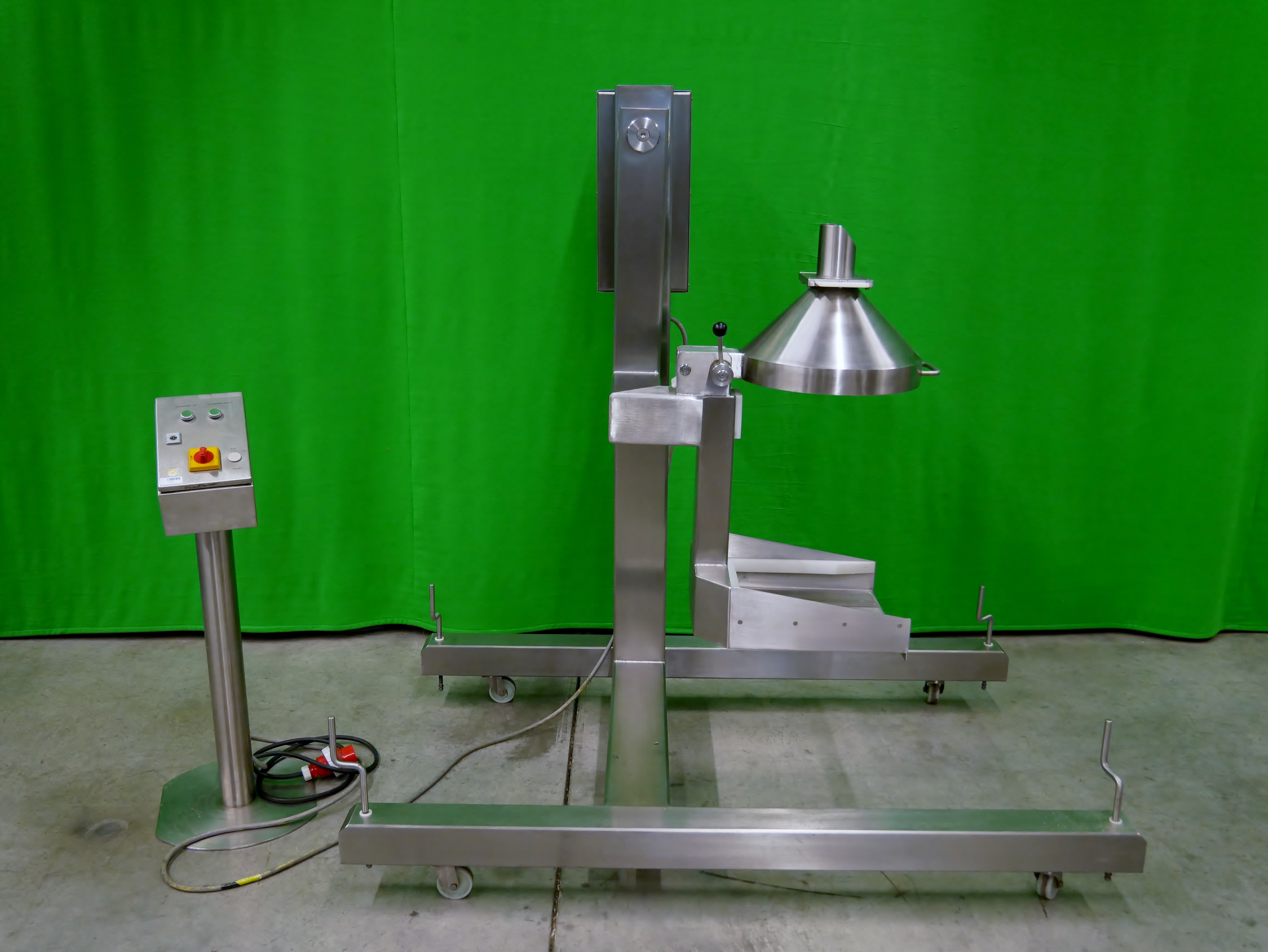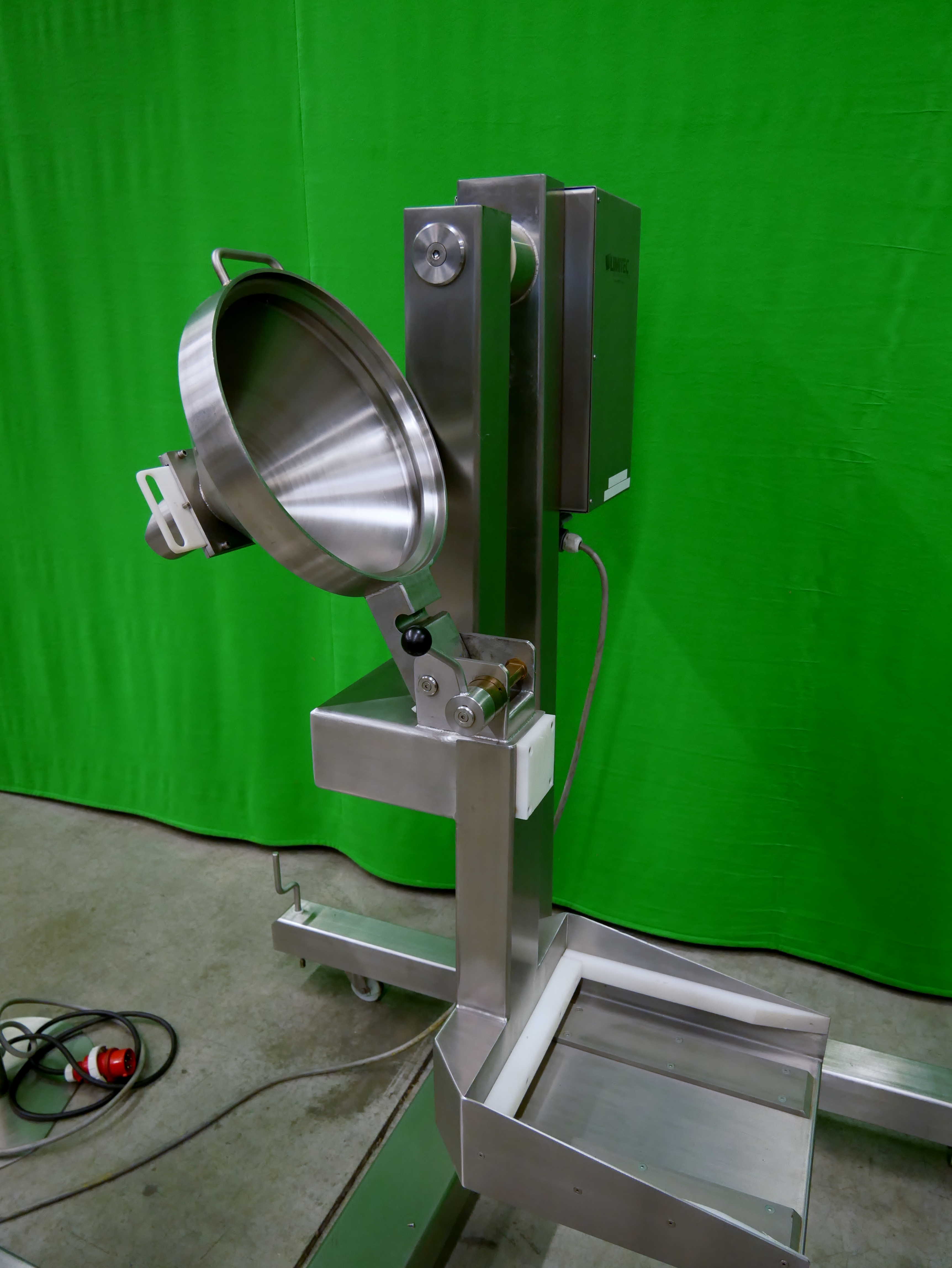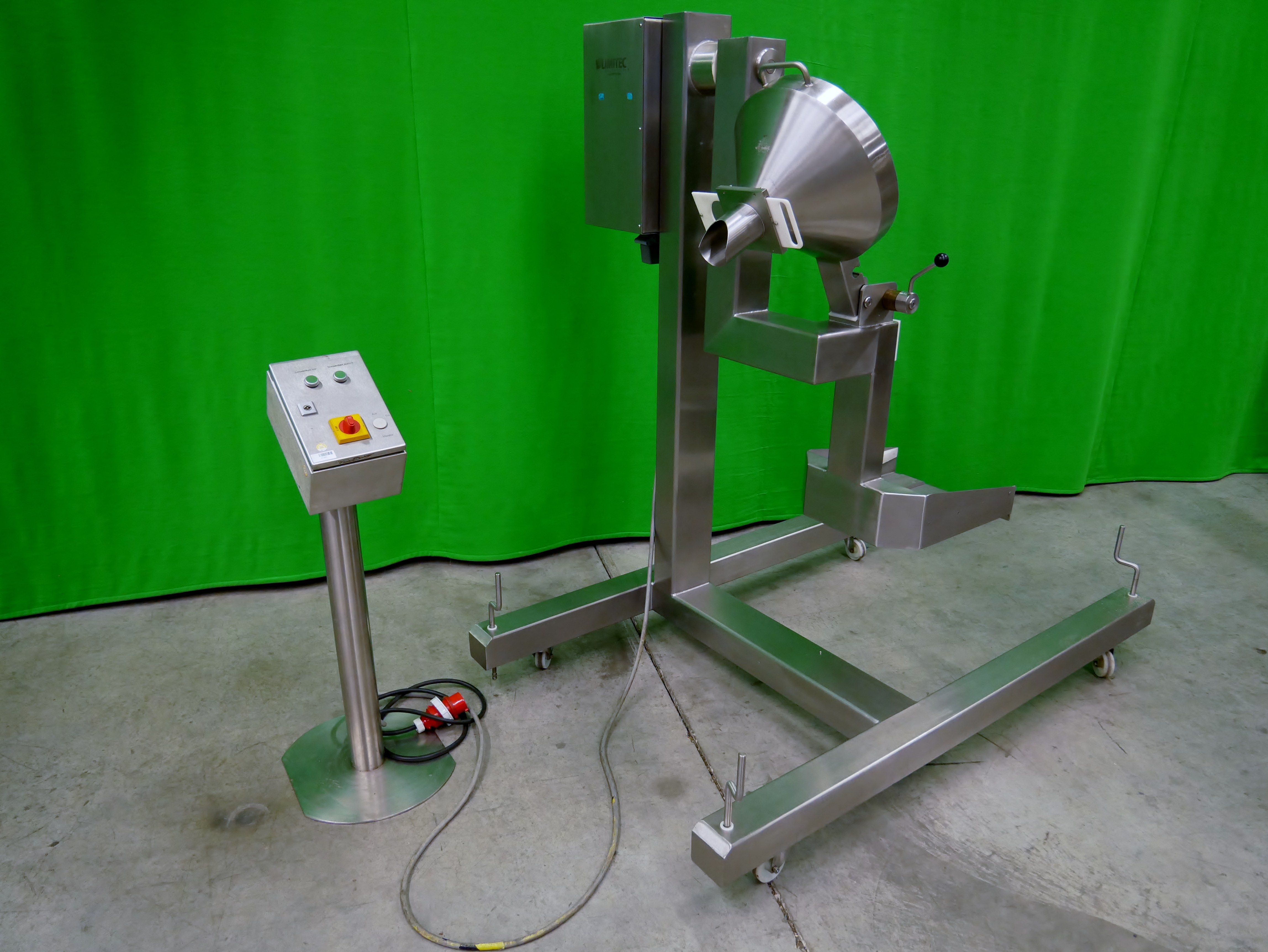 Limitec Mobilne urządzenie do przechylania i opróżniania pojemników, do obracania i opróżniania pojemników o pojemności ok. 70 litrów, średnica 378 mm i wysokość 604 mm, udźwig max. 80 kg, elektr. połączenie 400V/50Hz/0.6KW, wymiary maszyny 1300 x 730 x 1816 mm (dł. x szer. x wys.), waga maszyny OK. 200 kg.