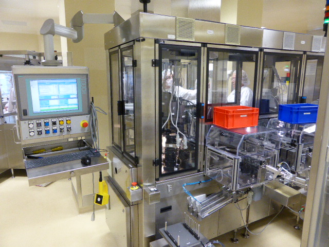 Brevetti ATM 15 duplex (2 moduły) automatyczna maszyna do inspekcji napełnionych strzykawek, obecnie nastawiona na strzykawki średnicy 10,85mm (długa i krótka igła), wydajność do 133/min na moduł (łącznie 266/min). Każdy moduł jest zaopatrzony w 6 stacji kontrolujących tłok, cząsteczki odblaskowe, wysokość napełnienia i pozycję tłoka, pokrycie igły, cząsteczki nieodblaskowe, dodatkowo miernik mętności. Każdy moduł ma 3 kanały wyrzucające oraz przejścia. Pierwszy moduł to ATM15 SX, rok produkcji 2008, drugi moduł to ATM15 DX, rok produkcji 2007. Oba moduły zarządzane są jednym panelem kontrolnym.