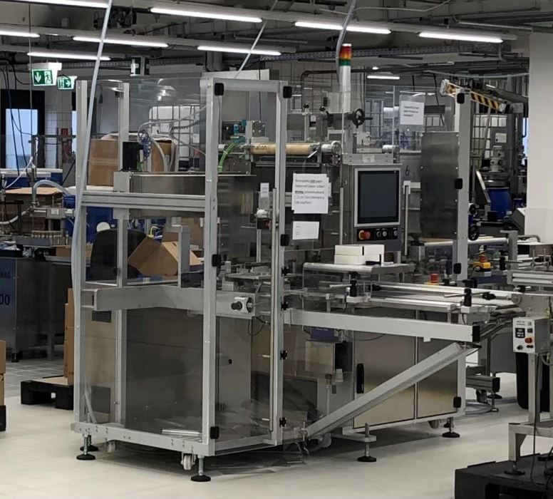 Pester PEWO-fold 1 owijarka do pojedynczych kartonów i grupowania kartonów, w materiałach OPP, PVC, PE, szerokość folii od 90 mm do 300 mm, grubość folii od 0,02 mm do 0,05 mm, maksymalna średnica rolki 350 mm. Zakres rozmiarów min. 60 x 60 x 20 mm, max. 400 x 350 x 140 mm, Maszyna sterowana za pomocą ELAU/Schneider PacDrive, Przyłącze elektryczne 3x400V, V+N+PE/50-60 Hz, przyłączone obciążenie 5,2 kW/12,5 A, Ciśnienie robocze 4 bar, sprężone powietrze 4 do 10 bar. Wysokość podawania ok. 900 mm, wysokość wyprowadzania ok. 900-950 mm. Wydajność do 60 cykli/zestawiania na minutę. Zawiera: przenośnik podający o długości 1100 mm x szerokość taśmy 260 mm, przenośnik odbiorczy o długości 2000 mm x szerokość taśmy 260 mm, etykieciarka Alpha Compact, stół zbierający PEWO-collect, różne zestawy części formatowych.